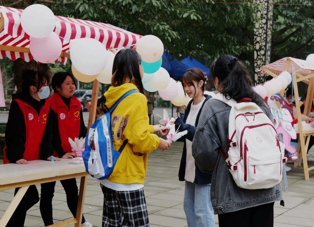 春来时,我们在“女生节”交换浪漫。2023年3月共青团重庆移通学院委员会联合淬炼·国际商学院青年志愿者协会在黄桷树广场举办“益”起“珍爱”她女生节公益特别活动,此次活动由重庆市珍爱卫生用品有限公司赞助,在节日之际为全体女性师生免费发放卫生湿巾及卫生巾,希望广大女性可以更好地爱护自己,关注女性生理健康。