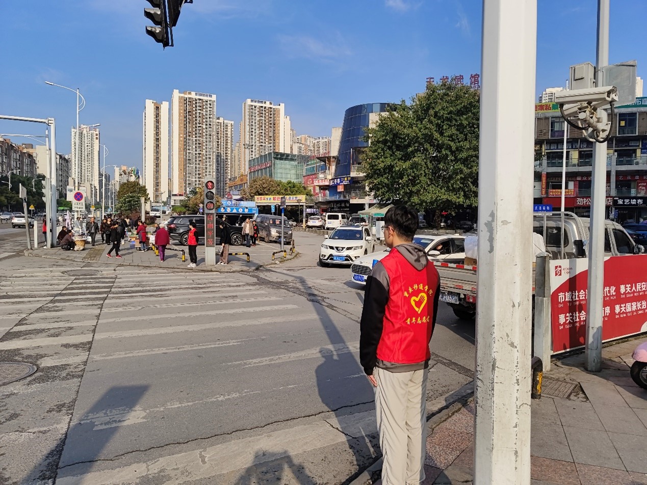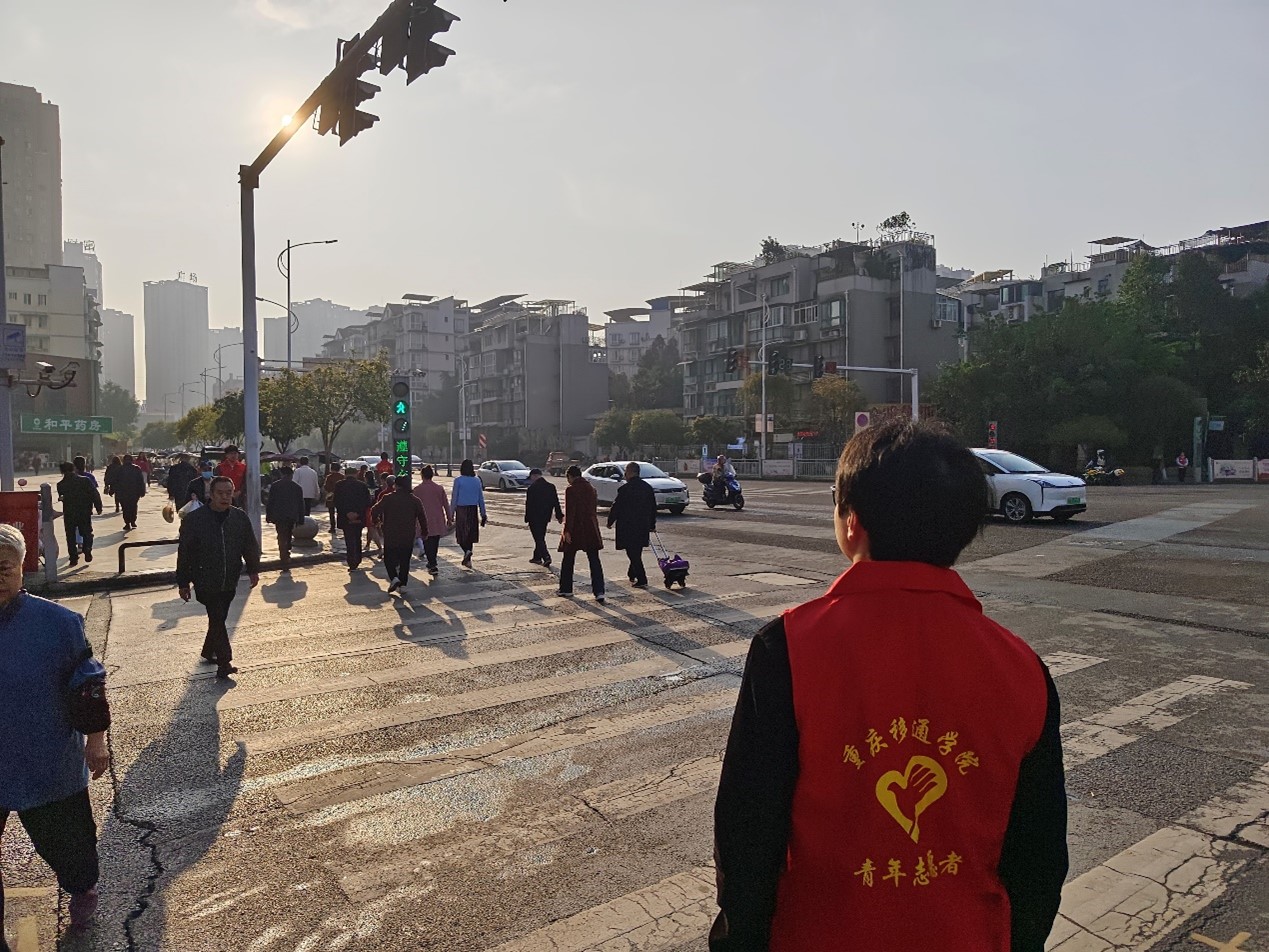 为了提高群众的交通安全意识,加强交通安全的的影响力,扩展宣传面, 2023年3月11日上午9点,智能工程学院青年志愿者协会志愿者与知交规支队成员来到义乌治安岗亭开展交通文明劝导活动,与合川区交巡警支队共同创造一个安全文明的交通环境。