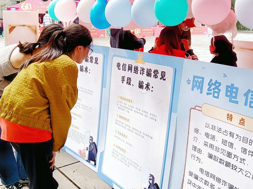 “猫头鹰”防诈志愿服务支队所设计的鼠标垫、口罩、防诈骗宣传册等文创产品在展示的同时也向同学们普及了防诈骗知识,潜移默化中提高同学们防诈骗意识。