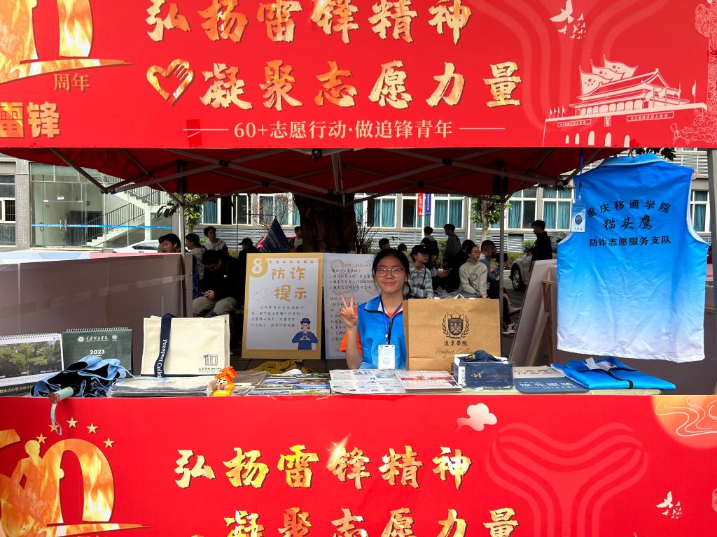 3月10日,在校党委指导下,校团委于黄桷树广场开展“逐‘锋’60年往昔,践行60‘+’行动”,我院荣获2023年“返家乡”社会实践优秀组织单位,志愿服务板块指导老师杨斌誉应邀发言,“猫头鹰”防诈志愿服务支队、远景学院“半亩花田”工坊应邀参展。