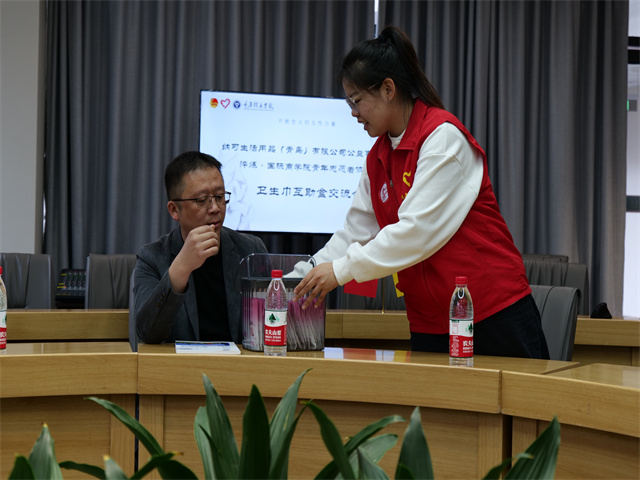 予她同行·“SHE”关爱女性志愿服务项目卫生巾互助盒计划自2021年9月落地实施至今,已实现合川—綦江双校区女厕全覆盖,共计完成80余次卫生巾补充活动,补充卫生巾67000余片。3月12日下午,为进一步开展SHE卫生巾互助盒计划,纳可生活用品(青岛)有限公司董事长助理代雪飞及其团队一行到我校进行参观交流,淬炼·国际商学院青年志愿者协会指导老师张鑫、淬炼·国际商学院青年志愿者协会主席王若凡、SHE卫生巾互助盒发起人向奎霖、予她同行·SHE关爱女性项目历届负责人一同接待,本次交流在南湖书院圆桌会议室展开,重点围绕互助盒铺设成效、卫生巾使用情况和未来合作方向三个方面。