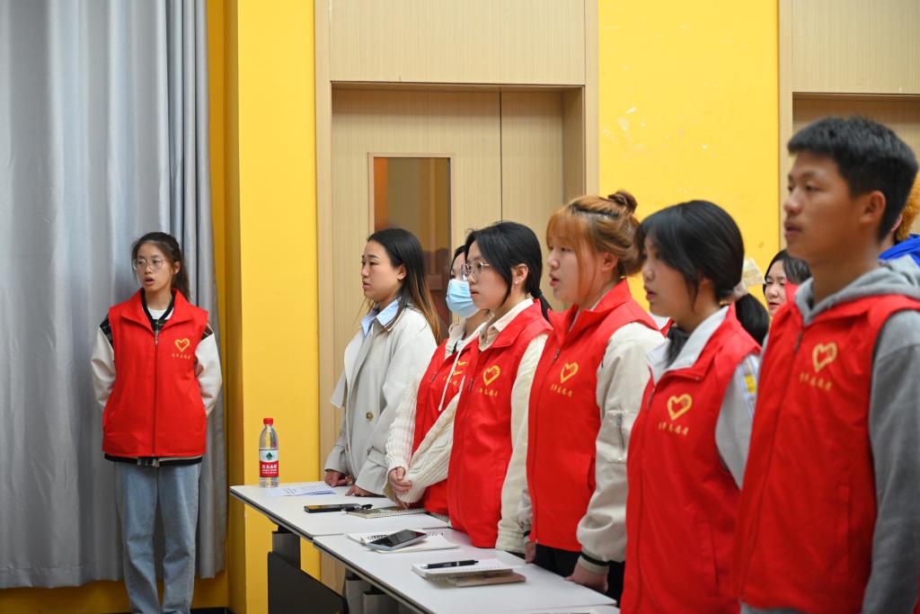 仪式伊始,全体师生起立,共同唱响了《青年志愿者之歌》,现场歌声袅绕,掌声雷动。这一首歌曲点燃了每个人心中的火花,将每位志愿者身上那股坚定的志愿服务精神展现的淋漓尽致。