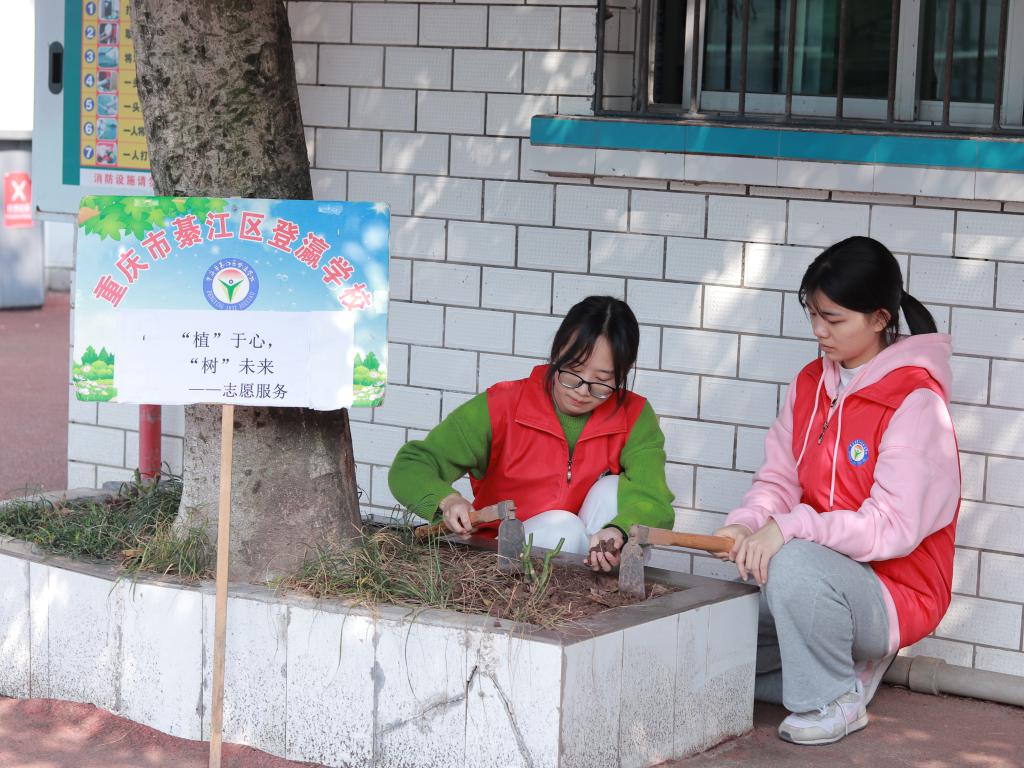 “阳春三月催新芽,植树造林正当时。”3月12日,第45个植树节来临之际,为进一步提高小朋友们的绿化意识和生态文明意识,以实际行动践行“绿水青山就是金山银山”的理念,重庆移通学院青年志愿者协会“七彩筑梦·完满绽放”关爱儿童志愿服务专项支队(綦)协同学院花卉协会,于3月14日在登瀛学校开展了“共植一抹绿,唤醒七彩春天”的植树节主题活动。