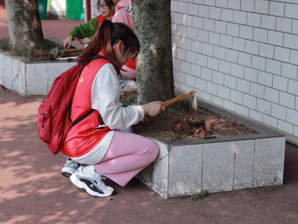 阳光明媚,微风正好。七彩支队成员们整理好活动材料,在老师的带领下进入了登瀛学校。志愿者和小朋友们一起来到校园一角的花台旁,互相讨论着怎样合理规划植株的位置。种植活动正式开始,花卉协会的小伙伴们给志愿者和小朋友分发了幼苗植株和植树工具。为确保科学种植、规范植树,花卉协会的成员对大家展开了事先指导,详细的说明了种植注意事项,以确保种植过程顺利。志愿者与小朋友们两两一组,走向自己选好的土块,拿起铁锹开始松土挖坑、插苗浇水,每道工序都一丝不苟、认真细致。在大家齐心协力下,12支幼苗植株安稳“落户”,稚嫩的新芽在阳光下散发着无穷活力。