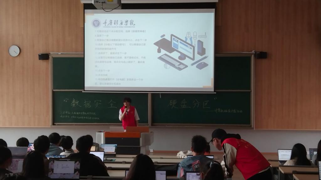 如今,随着互联网的不断发展,互联网已经成为了人们生活中不可缺少的一部分。计算机的普及,为我们的学习和生活带来了很多便利。为了使同学们能够合理规划计算机空间,加强同学们对计算机的认识。大数据与计算机科学学院计算机流动服务站志愿服务专项支队于3月15日在横山书院阶梯教室开展了“数据安全,硬件分区”活动,使同学们能够更加高效的使用计算机电脑。
