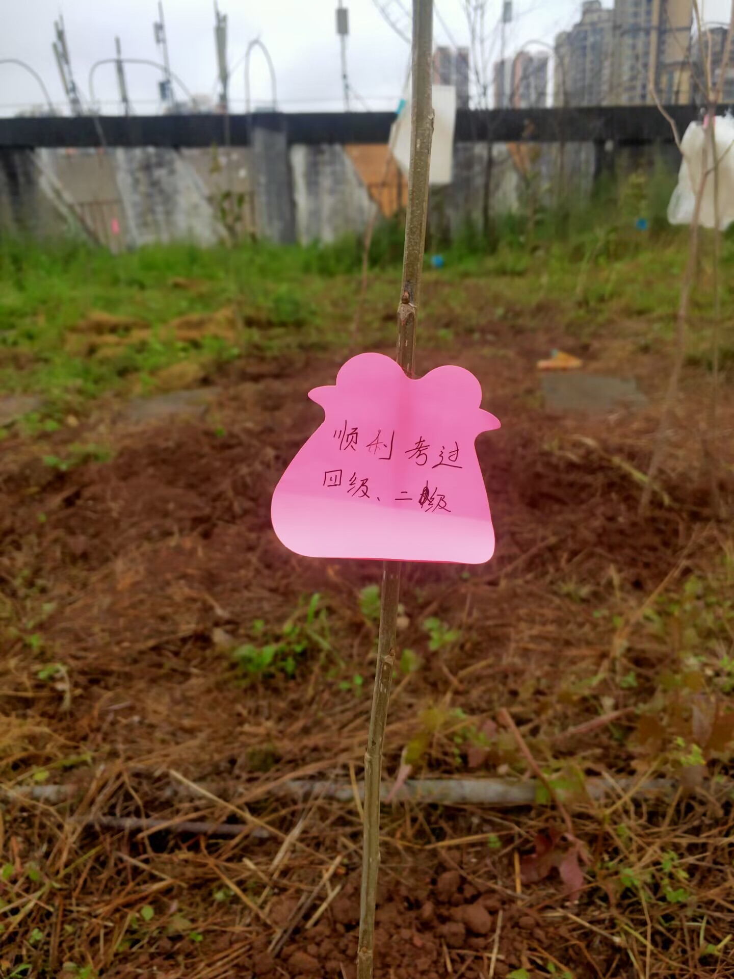 每一刻幼苗,都是未来的希望。志愿者们在自己亲手种下的树苗上附上祝愿,愿自己的期望和梦想能够随着树苗的生长而实现,希望自己的生活和学习可以像种树一样,每一步都算“树”。