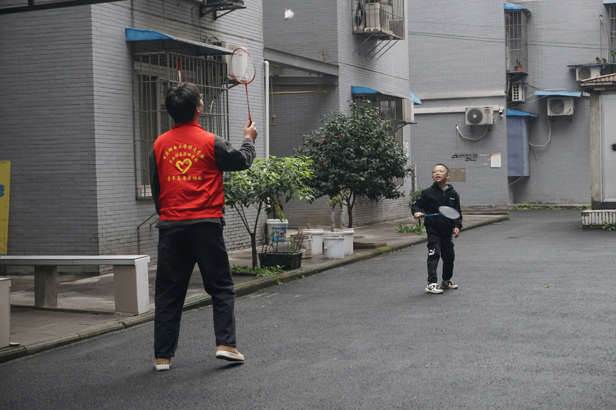 广场上传来一阵悦耳的笑声,“老鹰来捉小鸡了。”小朋友开心地说。大家跟在“鸡妈妈”的后面,开始了老鹰捉小鸡的游戏,小朋友们在游戏的过程中慢慢融入到志愿者当中,露出了甜甜的笑容,让现场充满了的欢乐的气氛。紧接着,志愿者们和小朋友们一起打羽毛球、踢皮球,一起沉浸在游戏的欢乐中,广场上呈现的是一幕幕温馨的画面,以及小朋友们纯真的笑容,在一片欢声笑语中结束了这一次爱心之行。通过一系列趣味小游戏的互动,练习了小朋友的注意力,身体协调、神经肌肉调控能力,在运动中传播爱与健康。