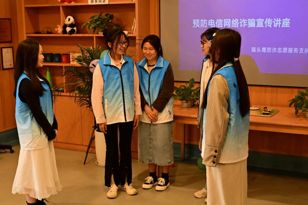十几岁的老人天真灿烂,古稀、杖朝之年的小伙童心未泯。肆意嬉笑,时光正好。03团支部的小分队在养老院活动室为老人们表演了一场绘声绘色的电信防诈骗小品。老人们坐在凳子上,那些突出颧骨顶着的一张张沧桑的皮,在这些饱经风霜的脸上渐渐绽开一丛笑,从前额到眼睛,再到嘴角,逐步展开。打满褶皱的额前下一双双失神的眼睛慢慢放出光,浑浊却温润。老人们爽朗的大笑起来,一边笑一边拍着手掌。03团支部小分队的小品表演生动形象,相信这场有意义的电信防诈骗小品表演已经深深印入老人们的心中,在欢声笑语中增强了老年人的法治意识和识骗防骗能力。但是关爱弱势群体,守护好老年人的“钱袋子”,不仅需要老年人自身防骗意识提高,更需要全社会的共同帮助。