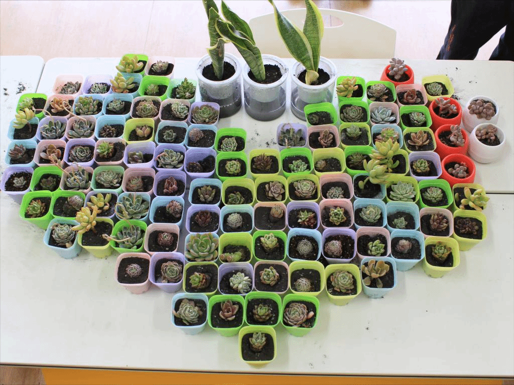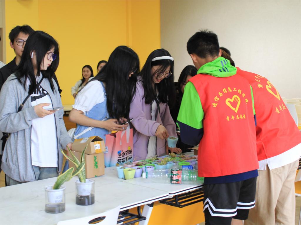 为使同学们在活动中感受温暖,明白环保意识的重要性,签到桌子上,一幅由多肉摆成的心型图案浮现于同学们眼前,领取多肉的同学们在看见图案的瞬间便感受到志愿者的点点温暖。与此同时,同学们手上的“宝贝”也让志愿者看到了大家的积极性,更加感受到了活动的意义。