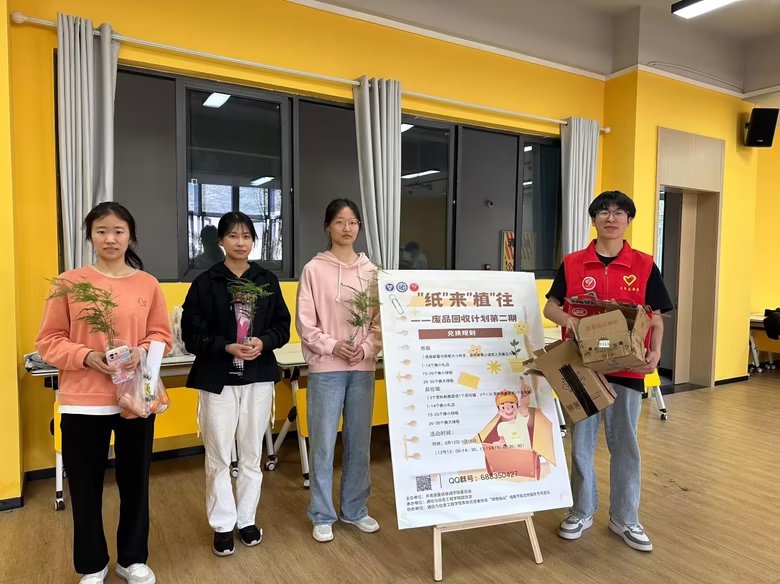 “垃圾分类我践行·文明新风‘綦’创造”主题系列活动第三弹——“纸来植往废品回收计划活动活动于3月12日及3月17在全校范围内开展。活动通过利用废品换绿植的方式进行,受到了全校学生的欢迎。其中,总参与1662人次,收集到水瓶1624个,收集到纸箱3737个,共发出绿植400余份,合计款项910元。