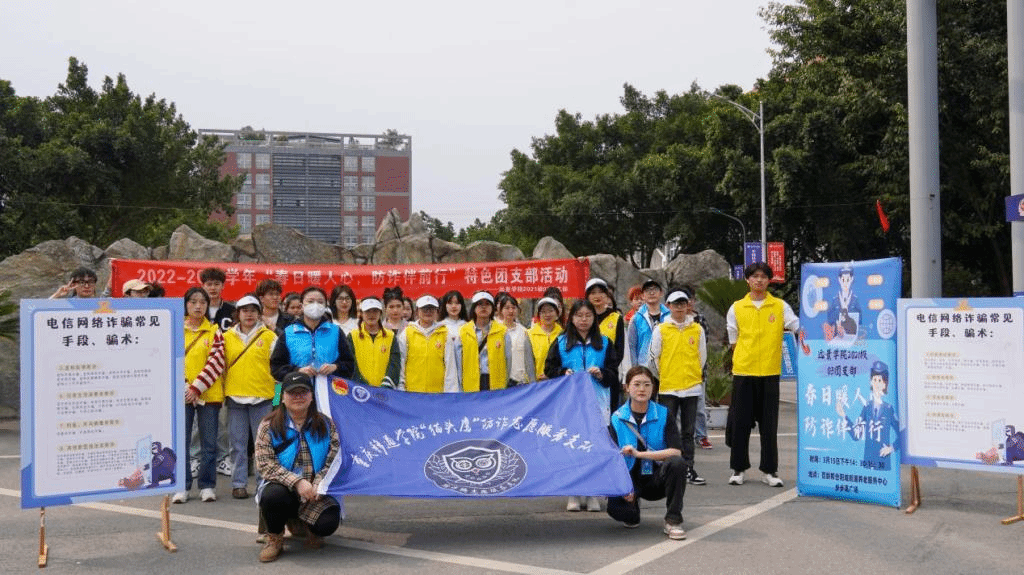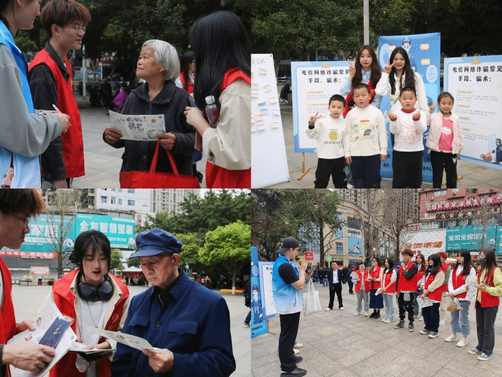 当今社会,诈骗套路层出不穷,出现了很多针对老年群体的诈骗犯罪。为深入打击养老诈骗犯罪,进一步提高老年群体对诈骗犯罪行为的防范意识,守住老年人“钱袋子”。2023年3月15日,重庆移通学院“猫头鹰”防诈志愿服务支队联合“馨小青”志愿支队与远景学院2021级03团支部分别在合川区步步高广场和合阳城街道养老服务中心联合开展“春日暖人心, 防诈伴前行”老年人预防诈骗活动。