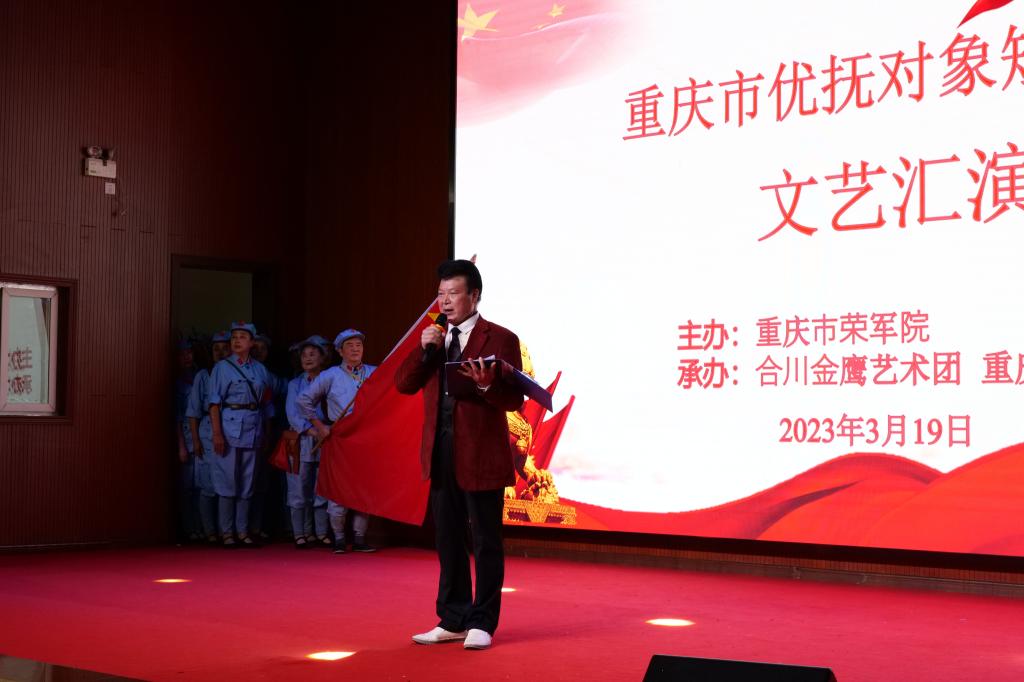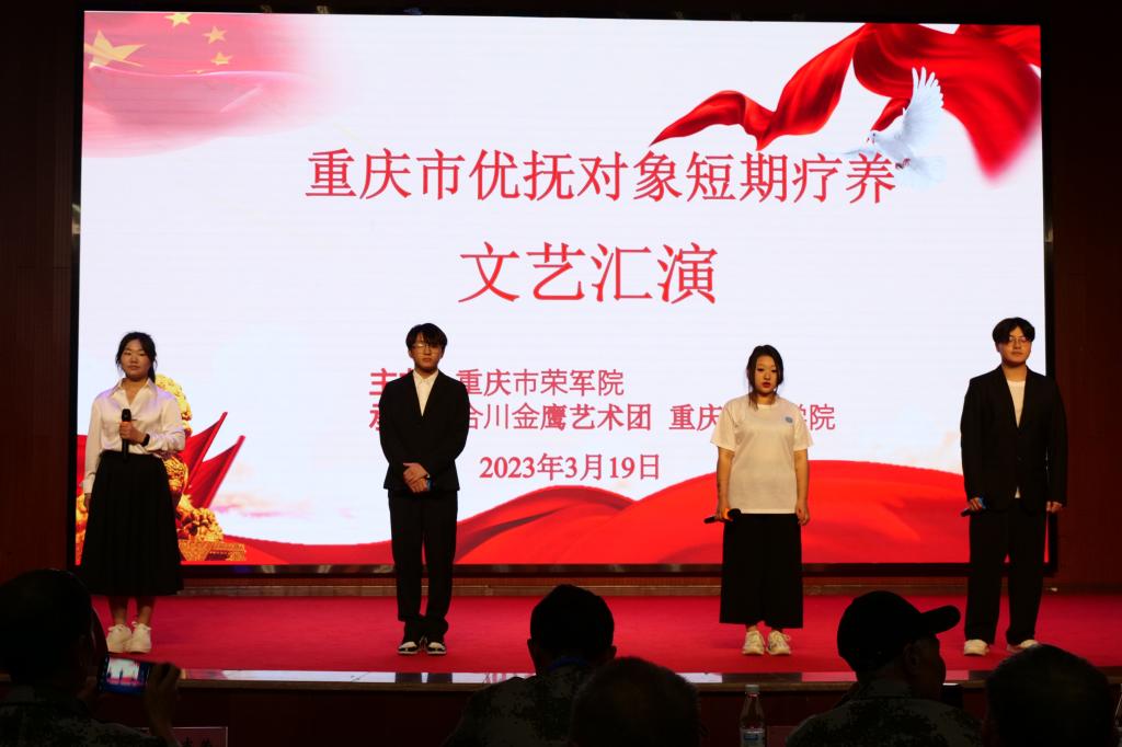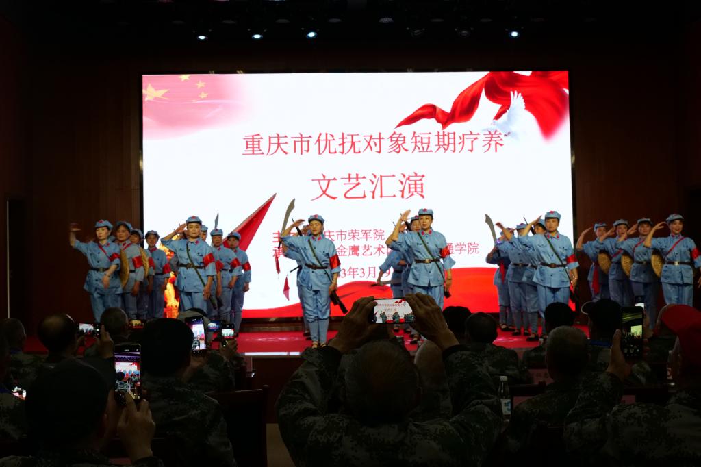 一寸山河一寸血,一抔热土一抔魂,为深入贯彻学习党的二十大精神,引导青年传承和发扬红色文化,淬炼·国际商学院青年志愿者协会“光芒再放”关爱老兵志愿服务专项支队协同合川金鹰艺术团、24团支部迎着春风于2023年3月19日在重庆市荣军院开展了重庆市优抚对象短期疗养文艺汇演活动。