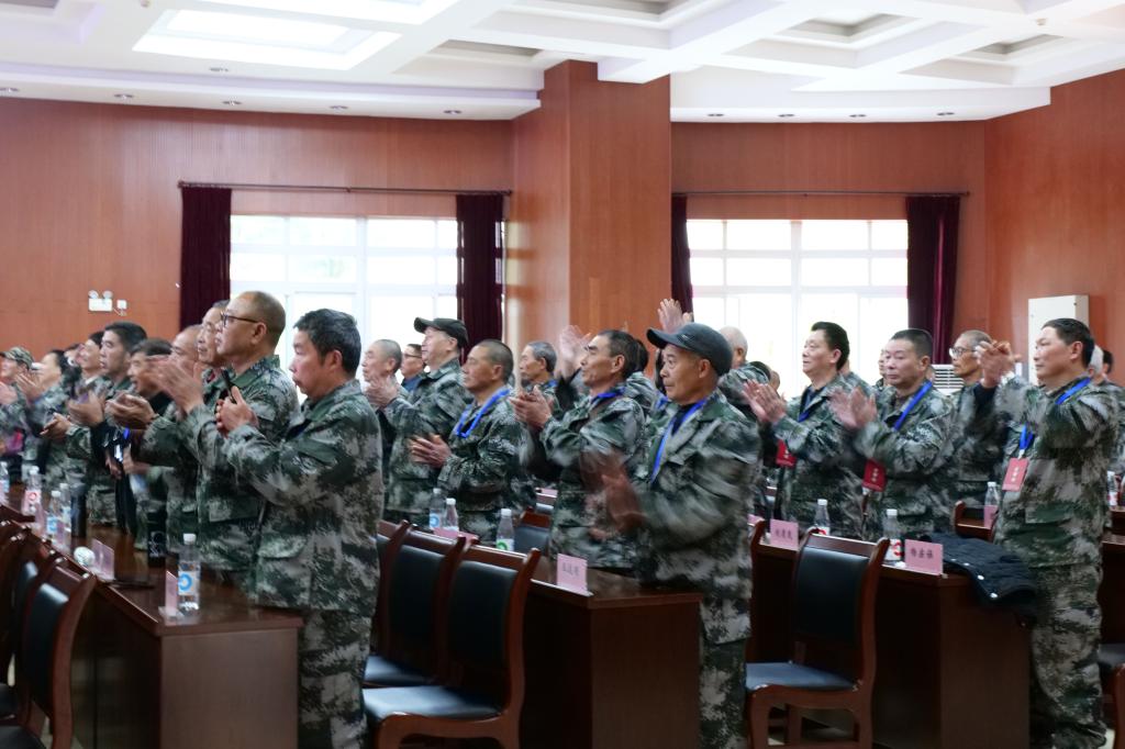 演出落幕,全体老兵起立,纪律性刻在了骨子里,所有人大声齐唱《歌唱祖国》,为活动画上完美句号。