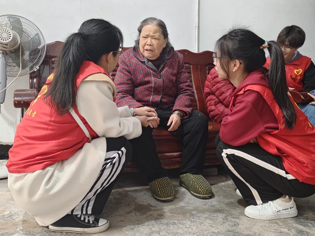 部分爷爷奶奶由于腿脚不便不方便下床,只能由公寓里的阿姨帮助完成洗漱和指甲清理。志愿者们向阿姨了解情况后,从阿姨拿出的小箱子中拿出指甲剪,小心翼翼地为爷爷奶奶们清理指甲,老人们慈祥的面孔上露出了微笑。在清理指甲的过程中,一位爷爷哼起了歌志愿者跟着歌声打起了节拍,节拍声回荡在整个公寓。清理完指甲后,志愿者端起热水为腿脚不便的爷爷奶奶擦脸洗脚,志愿者在给老人洗脚的过程中轻轻说道:“奶奶,水温烫吗?力道用得重吗?”在洗脚的同时志愿者还给老人们耐心讲解如何防范电信网络诈骗,叮嘱饮食、睡眠、起居等事项。