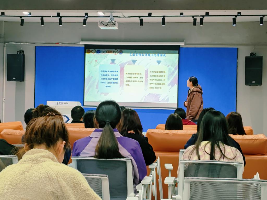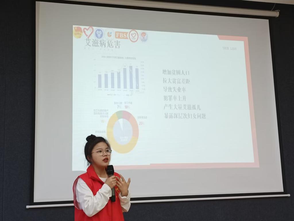 “艾”不可怕,“爱”是救赎。在学校里面便有这样关爱着这一特殊群体的志愿服务队伍——大数据与计算机科学学院青年志愿者协会天使关艾志愿服务专项支队。在志愿者郭小容的讲解与分享下,同学们对我校志愿服务工作有了新的认识,防艾志愿者的实际作为是如此的多样化。三下乡里更是将防艾知识植入小朋友们的心中,从小朋友抓起,让这一正向意识进行传递。同时,从艾滋病传播途径、艾滋病的危害进行分析,推导出了最优服务技能。郭小荣学姐结合自己的实践经历告诉志愿者们,或许关心艾滋病病人,关爱艾滋遗孤并不难,从心出发,多理解,多包容就能做到。