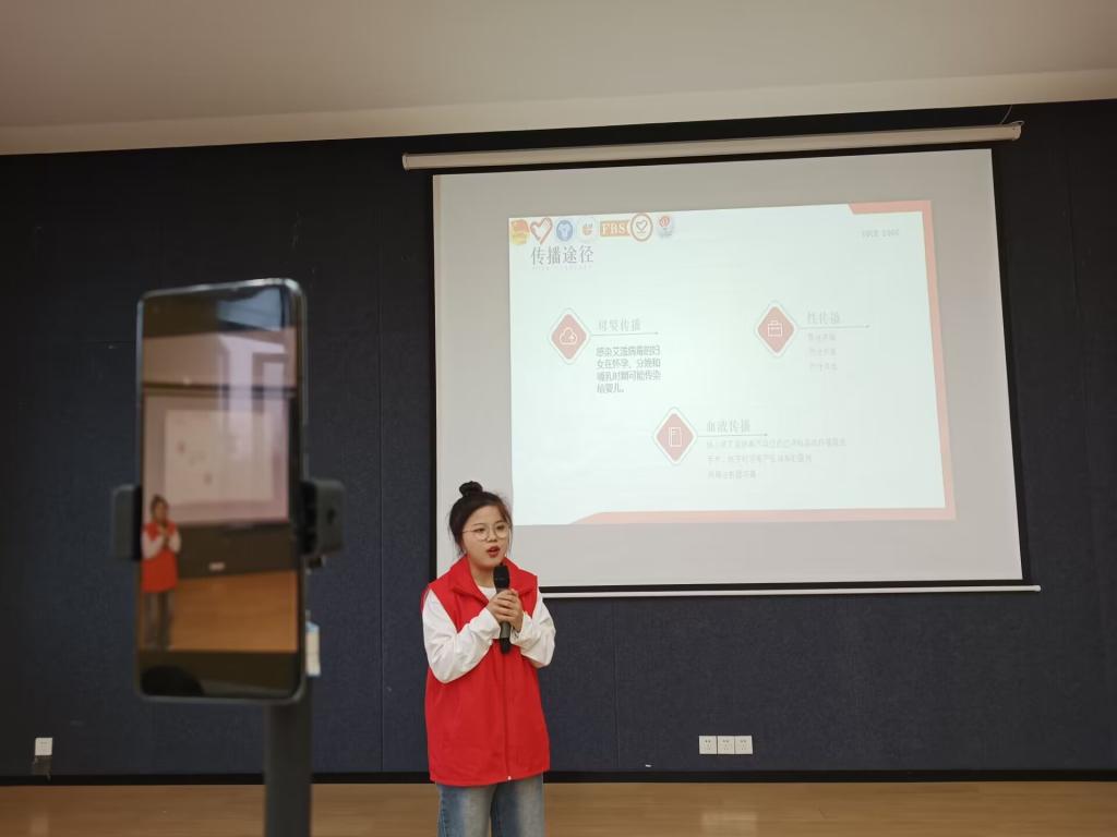 待志愿者郭小容的精彩分享结束后,主持人杨茜进行了相关的主题总结与延伸,并积极呼吁同学们,要以正向的宣传与实践的践行为防艾志愿进行赋能,要“艾”成“爱”,积极鼓励与支持他们,为这一事业贡献青春力量。每一个小个体从来都不是大时代的被动接受者,小个体的参与和行动才能汇成大时代的潮流,全社会要携手一起遏制艾滋蔓延,才能共建和谐社会。要正确看待这类特殊群体,志愿者们需对其有一个全面而深刻的认识,有基础的理论知识与医疗技能傍身。