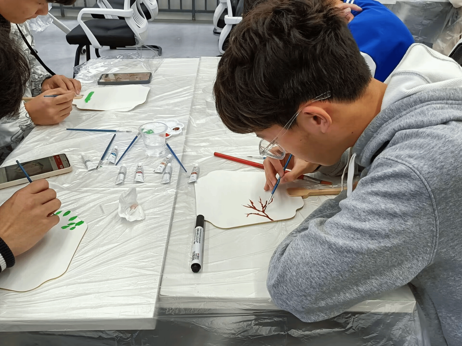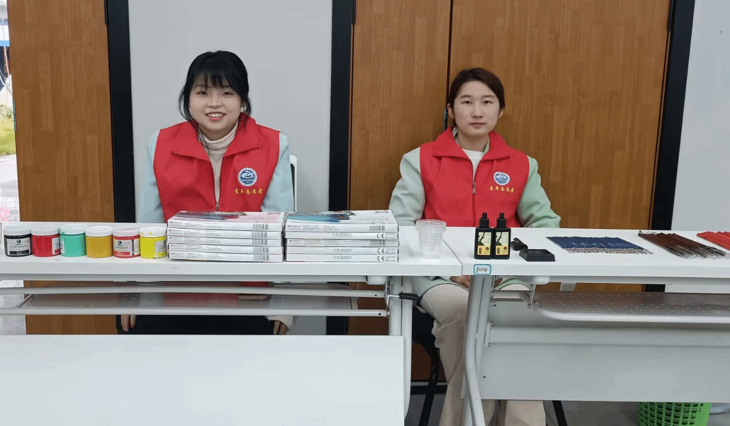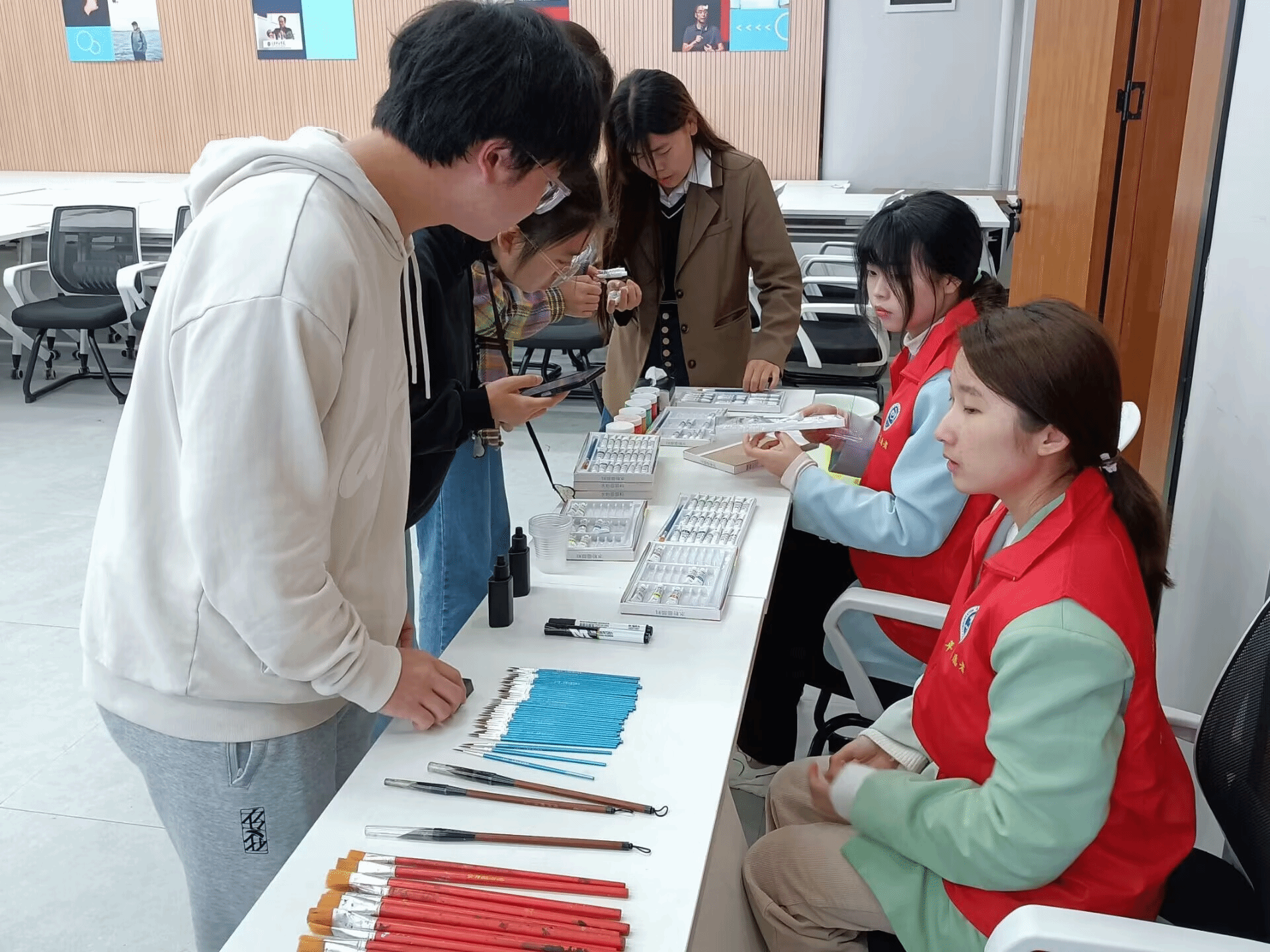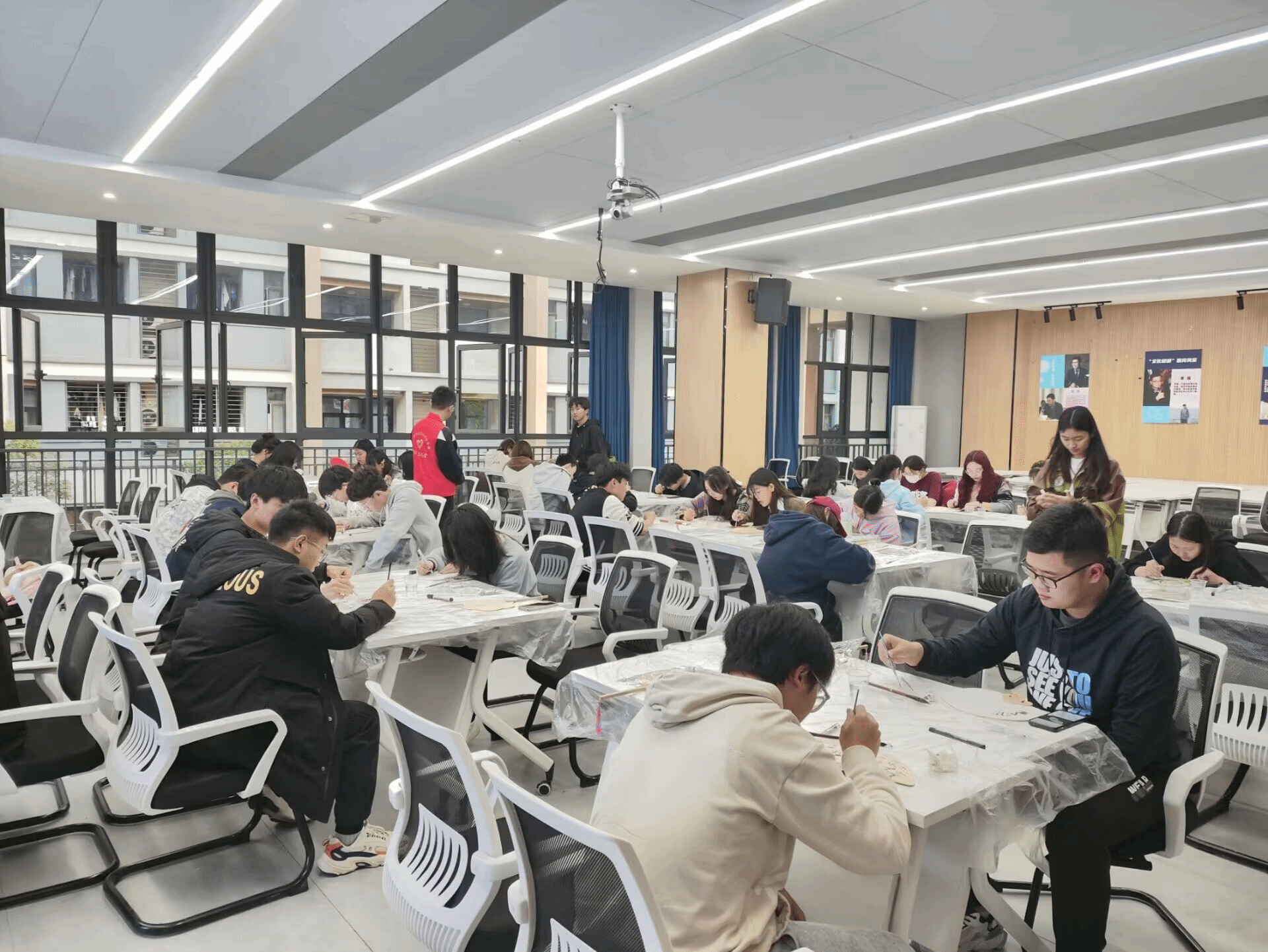 活动开始前,志愿者们早早地就开始布置活动场地,并以最好的姿态静待参与者的到来。时钟悄然地溜走,同学们也陆陆续续的入场。在志愿者的引导下,同学们井然有序的选取自己心仪的扇面,领取所需的物品。一手执笔,点蘸为色。颜料的自由搭配造就独特风采的团扇,用想象赋予其不一样的价值。现在让我们从图中进入现场一起体会由团扇与诚信所碰撞出的那一抹光彩。