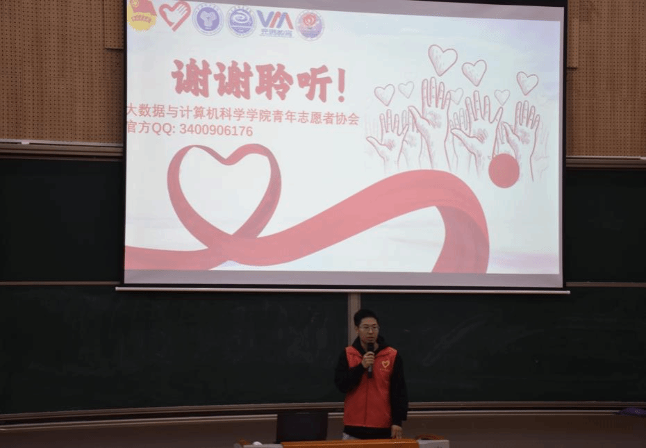 活动中由大数据青年志愿者协会部长贾轩同学带领讲解志愿者的基本行为规范,普及志愿服务的基本常识,明确同学们当志愿者的初心和身为志愿者需要注意的事项,树立志愿者心理的宏图并建立自信。以“赠人玫瑰,手有余香”为精神指引,建立起一个有组织有纪律的青年志愿者团队,希望志愿者做好宣传动员,把志愿的精神展现给同学们,态度是影响服务质量的重要因素。