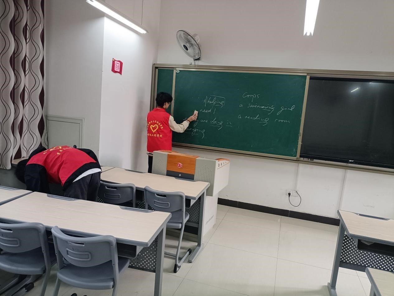 一个良好的环境也能让学生们有一个好的心情去学习,为了营造干净美丽的校园环境,智能工程学院青年志愿者协会“志绿·志园”志愿服务专项支队于2023年3月31日下午四点在松格书院、竹逸书院、梅若书院、荷悦书院进行书院教室地清理,志愿者们在给老师和同学带来舒适、干净的工作和学习环境的同时增强自己的环保意识,提高自己的个人素养。