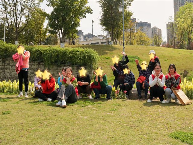 因为有机遇,所以想给别人撑把伞。这类特殊群体和大家一样,有着明亮的双眼,但是眼里充满了迷茫和恐惧,也敏感孤独,他们拥有着好听的名字——星星。为了更好地去感受星星们内心的世界,志愿者进行了自我介绍,通过简短的交流活动,志愿者很快地融入其中,在社工讲解志愿服务注意事项和流程后,全体人员在东津沱滨江公园美术馆门口进行合影。活动伊始,志愿者和星星们分成五组,每名志愿者看护两名星星,协助这群星星以及家属们一起到指定的七处地点拍照打卡。