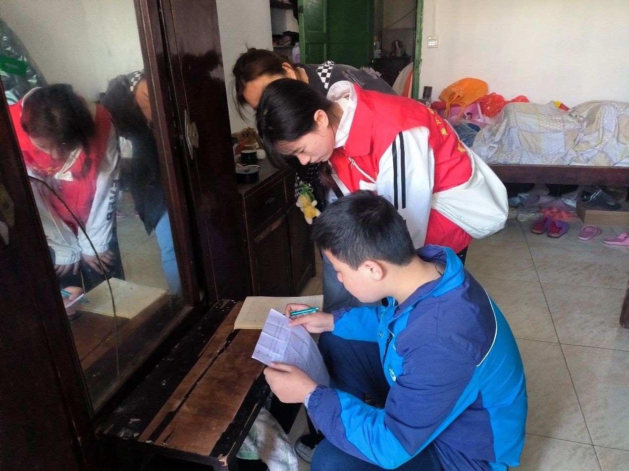 孩子们大多都生活在学校附近,由于今天是星期六,志愿者们便来到孩子们的家里,支队长将志愿者分为两组,一组辅导小朋友们做作业,完成周末的家庭作业,另外一组则是在楼下庭院里陪其他的孩子们玩游戏。孩子们很快加入进来,还有一些孩子在远处看着,面对初次见面的志愿者们还有些害羞。志愿者们来到他们身边,邀请他们一起玩耍。做完作业的小朋友也加入了其中,孩子们越来越多,小朋友和志愿者也建立了融洽的关系,庭院内充满着孩子们的欢笑声。