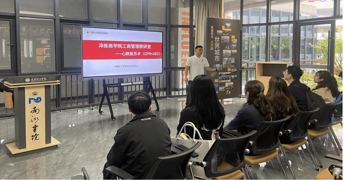 为进一步普及应急救护常识,大力弘扬“人道、博爱、奉献”的红十字精神,增强安全意识,让我校师生了解急救自救知识,提高自救互救能力,使大家在遇到突发状况时能正确应对,我校淬炼国际商学院工商管理教研室特邀我校红十字会田威老师于3月29日在我校南湖书院进行了一场红十字应急救护知识培训。