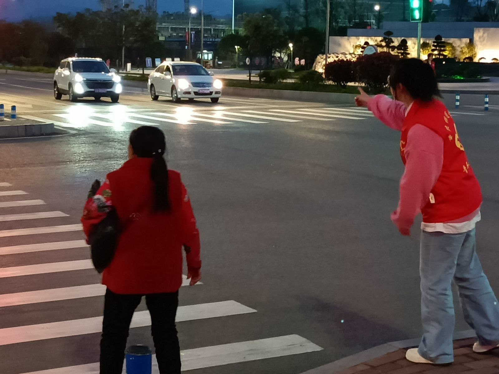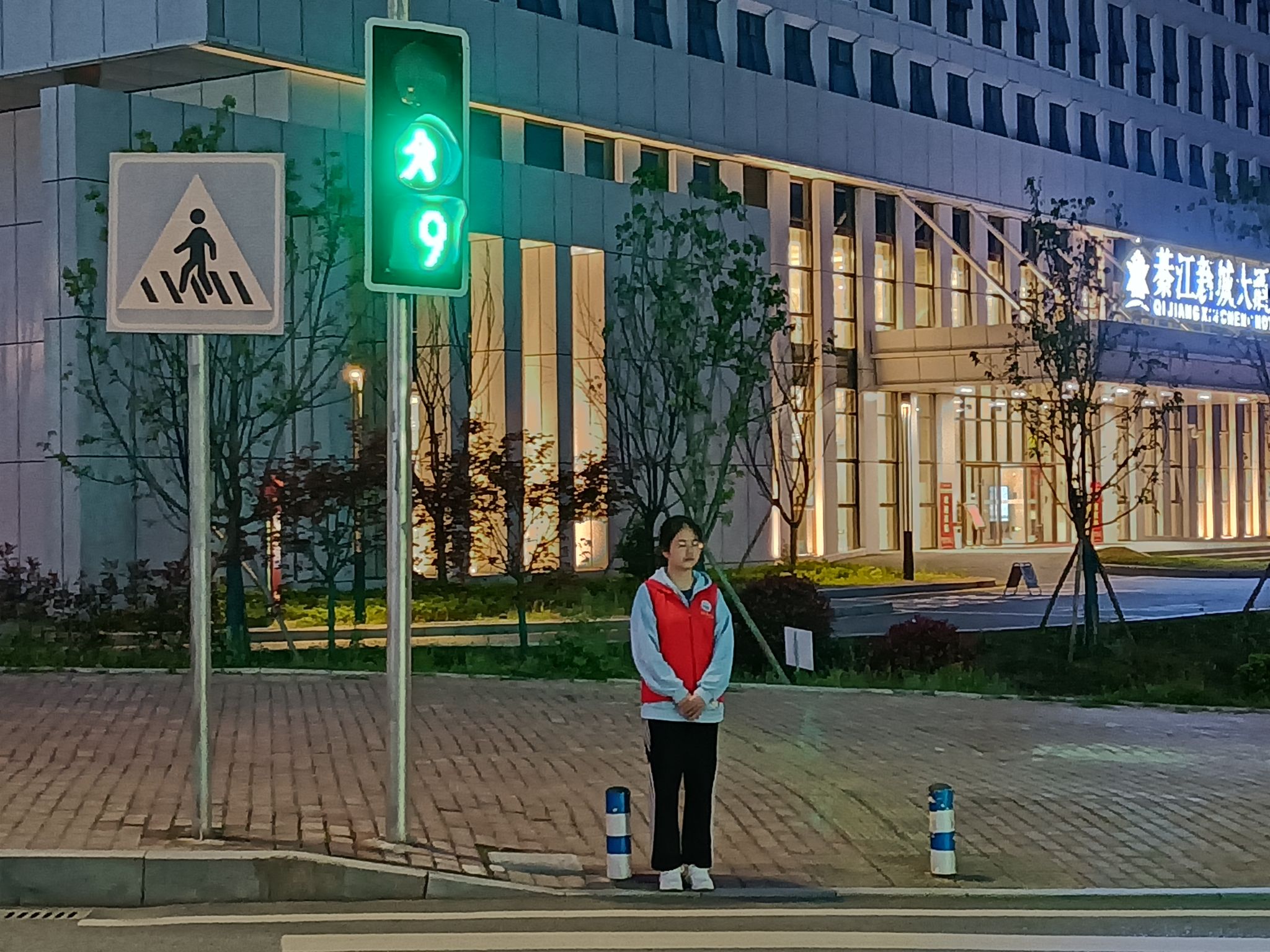 志愿引领,鼓舞社会参与。每天早上七点准时校门口集合,整理仪容,蓄势待发,披上马甲,有秩序有纪律听从组长指挥,站在马路中间的几抹红,是最美的一道线。不论是骄阳烈日,还是斜雨连绵,志愿者们依旧毅然决然站在“前线”,代表移通学院为创建文明城市奉献自己的力量,奋力续航让綦江城做到“出行先锋”。