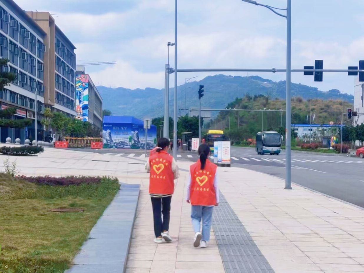 笃志而行,要以信仰驱动。青年志愿者扛起为民使命,哪里有需要,哪里就有她们主动作为的声影,将初心镌刻在“志愿之路”上。清洁、劝导、帮助......劝导红灯疾行的路人、捡起花丛深处的垃圾、接过沉重繁多的行李、搀扶步履沉缓的老人,带着这份感情和责任捞起袖子积极作为,全力以赴的为綦城献力是他们始终坚守的方向,一路生花。