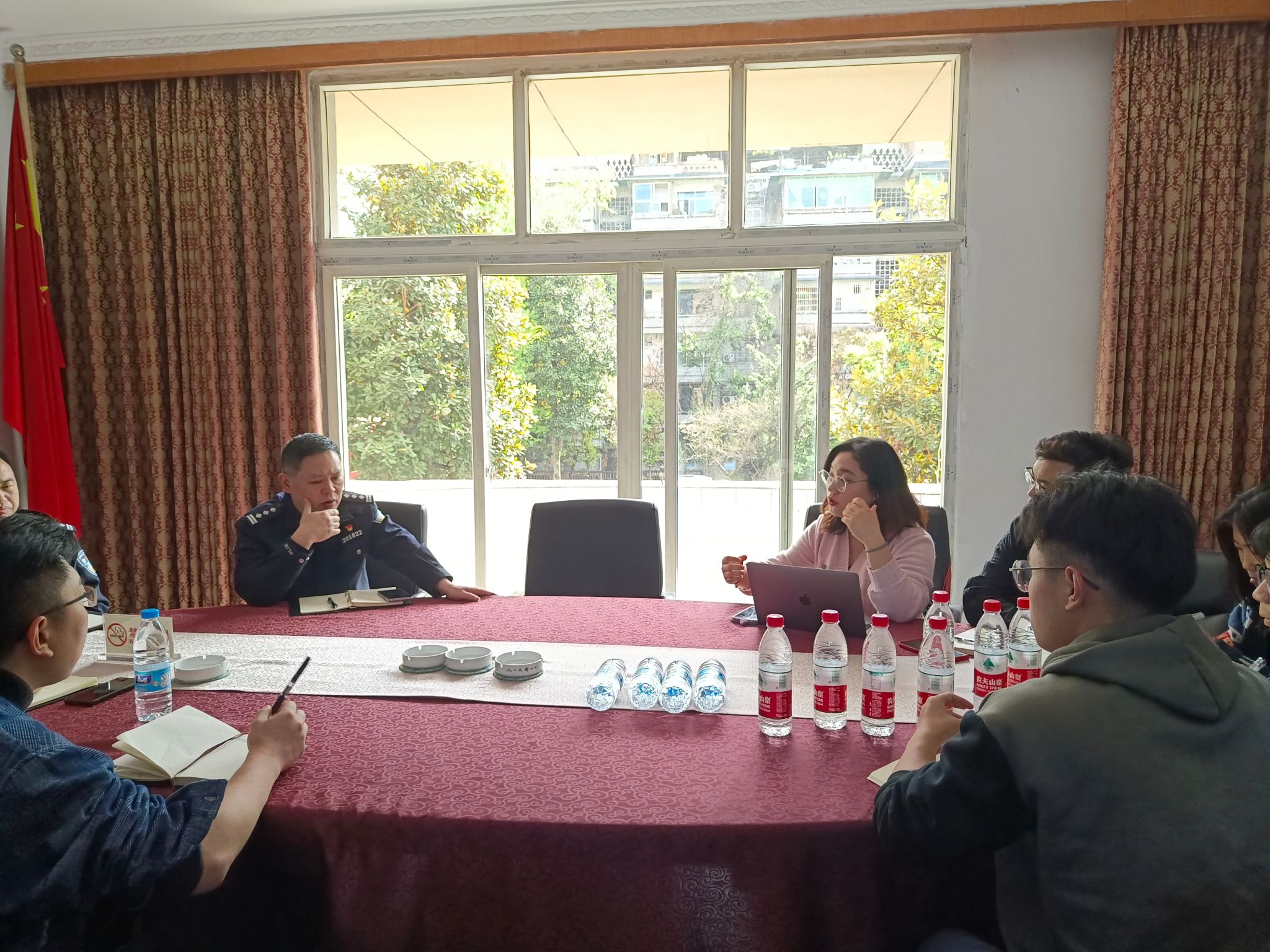 为进一步增强合川人民的道路交通安全意识和自我防范意识,有效预防和减少道路交通事故的发生。2023年4月5日下午3点,智能工程学院青年志愿者协会指导老师、主席和支队长前往合川区公安局交巡警察支队,就交通安全宣传事宜进行座谈交流。