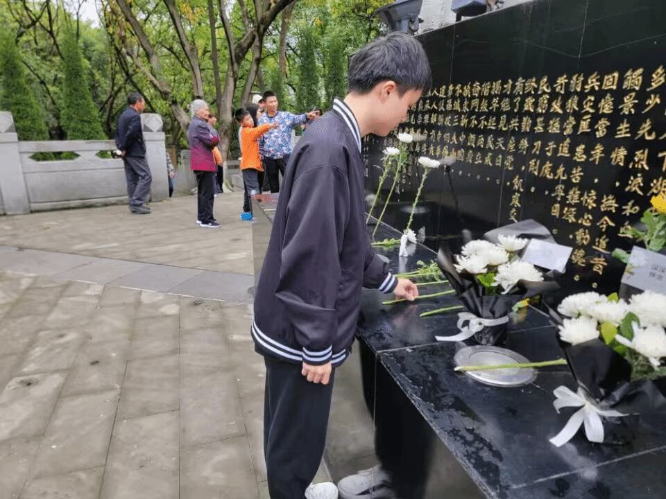 首先由代表为烈士敬献花圈,其余同学保持立正姿态共同见证着这庄严的一幕,接着全体肃立,向革命先烈默哀1分钟,再由2名学生代表朗诵诗歌,展现同学们最深的尊敬。