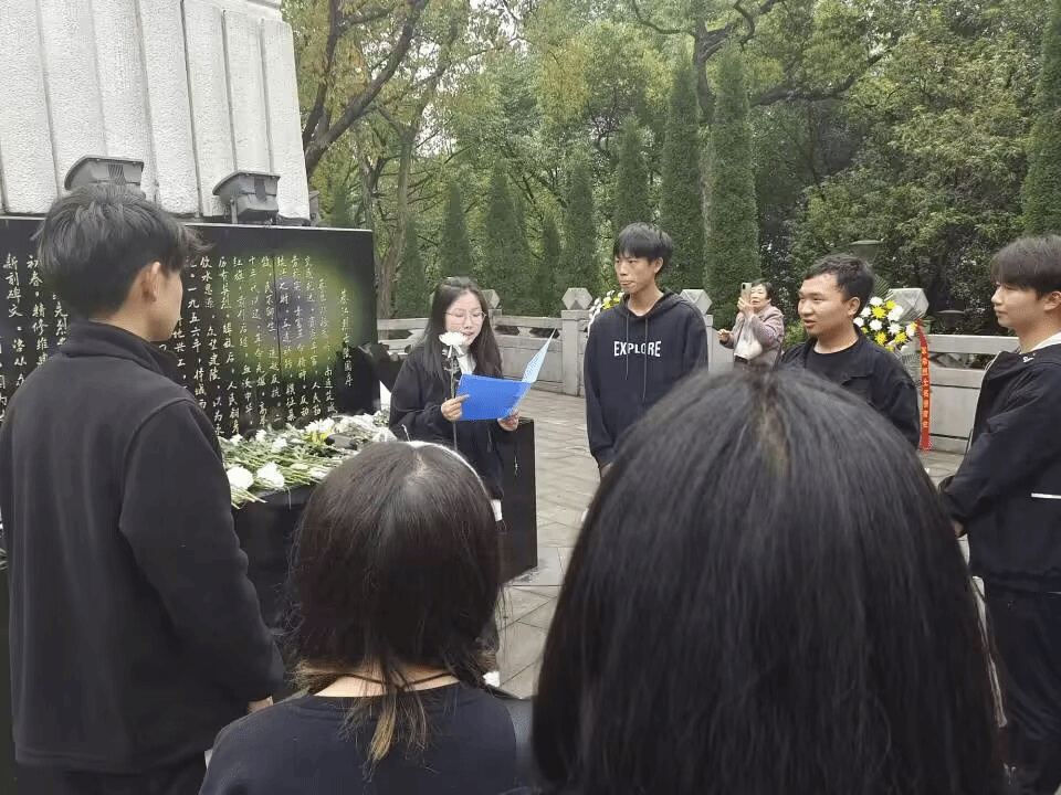 团支书引领同学们有序的绕墓一圈,向烈士敬献菊花并在团支部书记刘萄同学代表的引领在烈士纪念碑前宣誓。让同学们深刻了解中国青年要以实现中华民族伟大复兴为己任,为祖国的建设贡献自己的微薄之力。