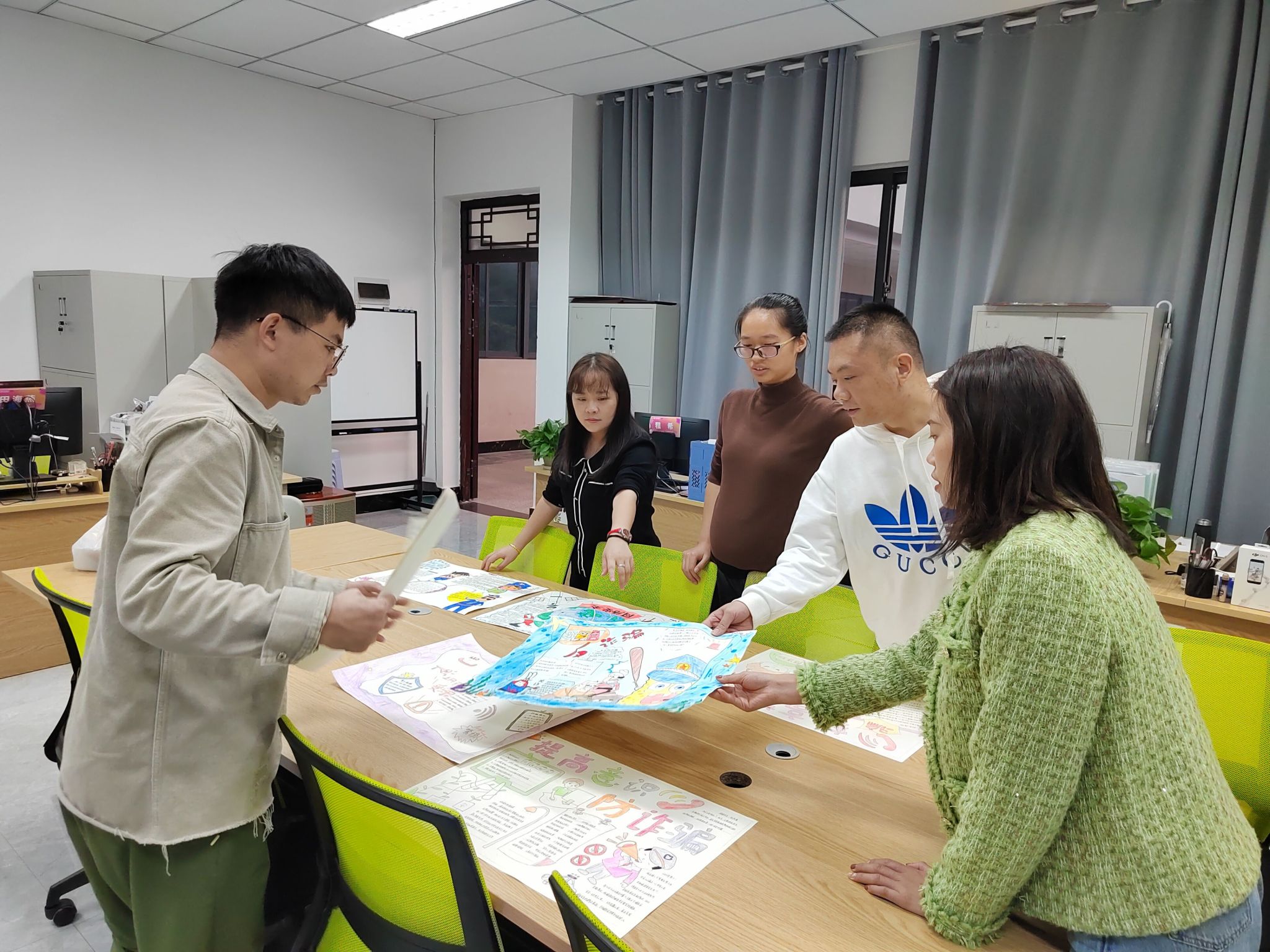 策动师生以发生在身边的真实诈骗案例为原型,将反诈元素融入手抄报、短视频等各类文创作品,通过模仿、原创、征集等方式进行创作投稿,并在QQ、抖音、微信、张贴栏、校内主要通道等线上线下宣传阵地广泛宣传,不断提升反诈宣传资料在师生视野中出现的频率,牢固树立防诈反诈意识。截至目前,共征集反诈手抄报348份,反诈短视频8部,各线上平台累计访问量5.2万,点赞量3259。