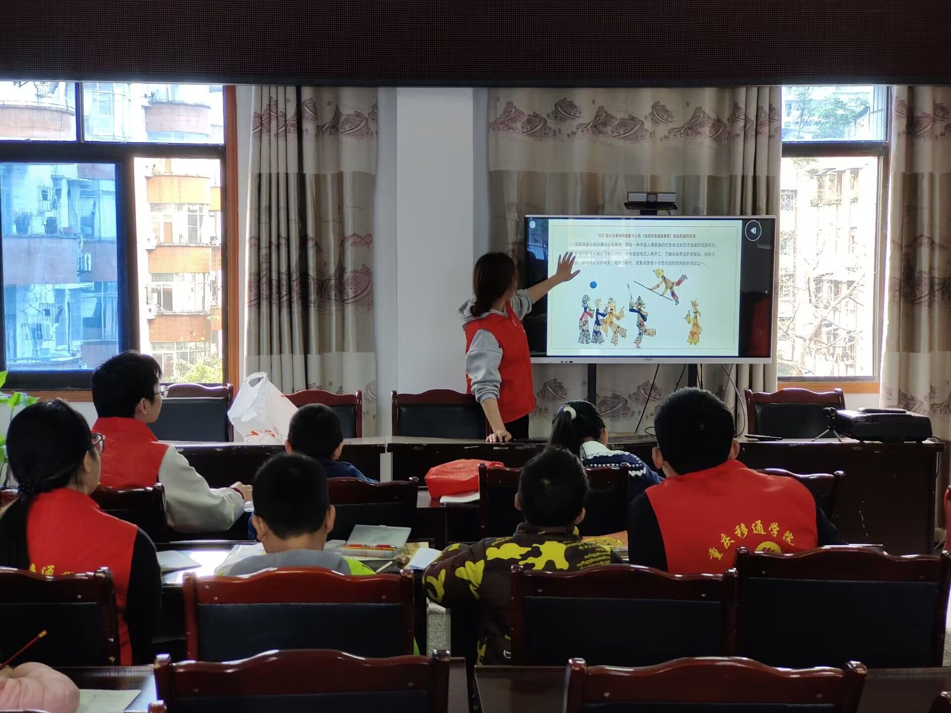 为丰富小朋友的课余生活,加强小朋友们对于中国传统文化的了解,2023年4月8日上午9:00,智能工程学院儿童“品经典·学国学”志愿服务专项支队在合川区双牌坊凉亭子便民服务中心开展活动。志愿者为社区的孩子们辅导功课外还给孩子们讲授关于皮影戏的相关知识。