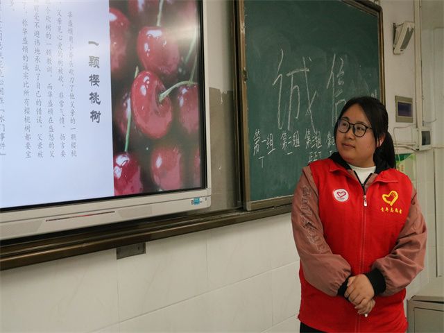 在课堂上,志愿者们向小朋友们介绍了诚信的基本含义,诚信对自身发展和为人处世的重要意义,积极引导小朋友们崇尚诚信,远离虚伪、欺诈,把诚信作为同学之间、师生之间、家庭成员之间相处的基本原则,以及对自身能有初步的评判能力。让孩子们懂得诚实守信必须从自身做起,从现在做起,做一个“诚实守信的好孩子”,并落实到日常生活实践中。同时,同学们在课下精心准备了许多有关诚信的小故事,并把这些讲诚信的小故事讲得绘声绘色,精彩纷呈。