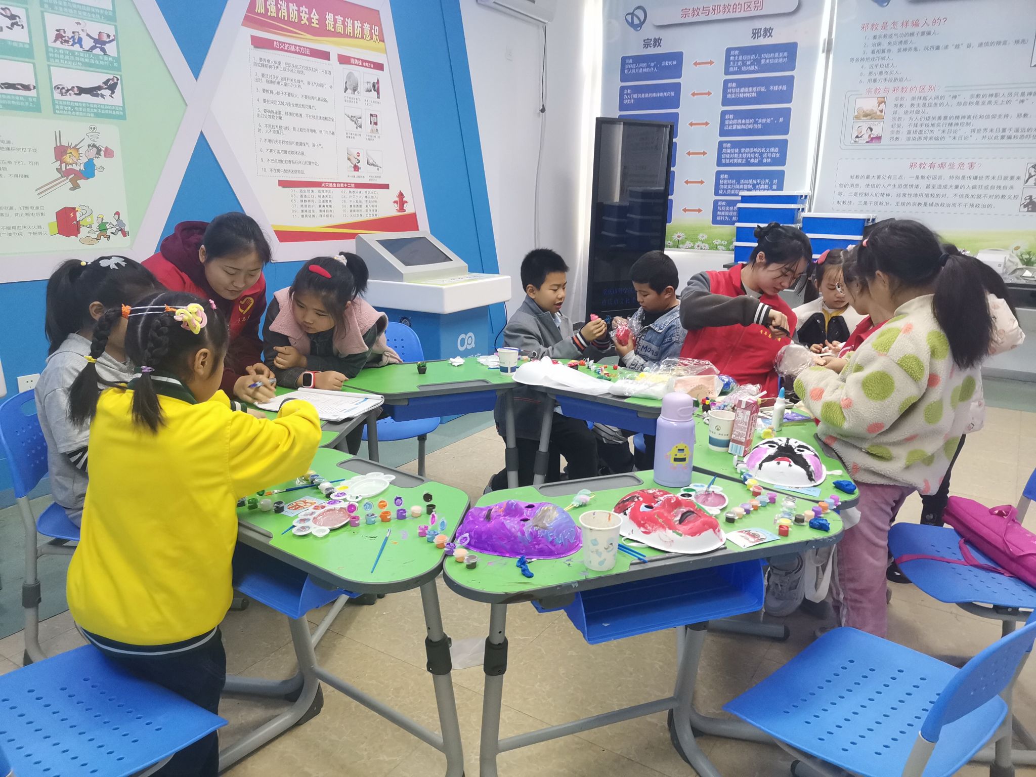 为让孩子感受京剧特色、体验传统文化,增强幼儿的民族自信心和自豪感,志愿者们与孩子们分享交流色彩、形式各异的脸谱代表着不同的人物性格、特点。“我喜欢金色的美猴王,因为他很勇敢!”,随着志愿者们的讲解,孩子们也挑选了自己心目中的“脸谱英雄”,并执起画笔,在白色脸谱上绘着自己心中的英雄。瞧,一张张色彩艳丽、表情丰富的脸谱,是孩子们对历史英雄的崇拜和敬仰!