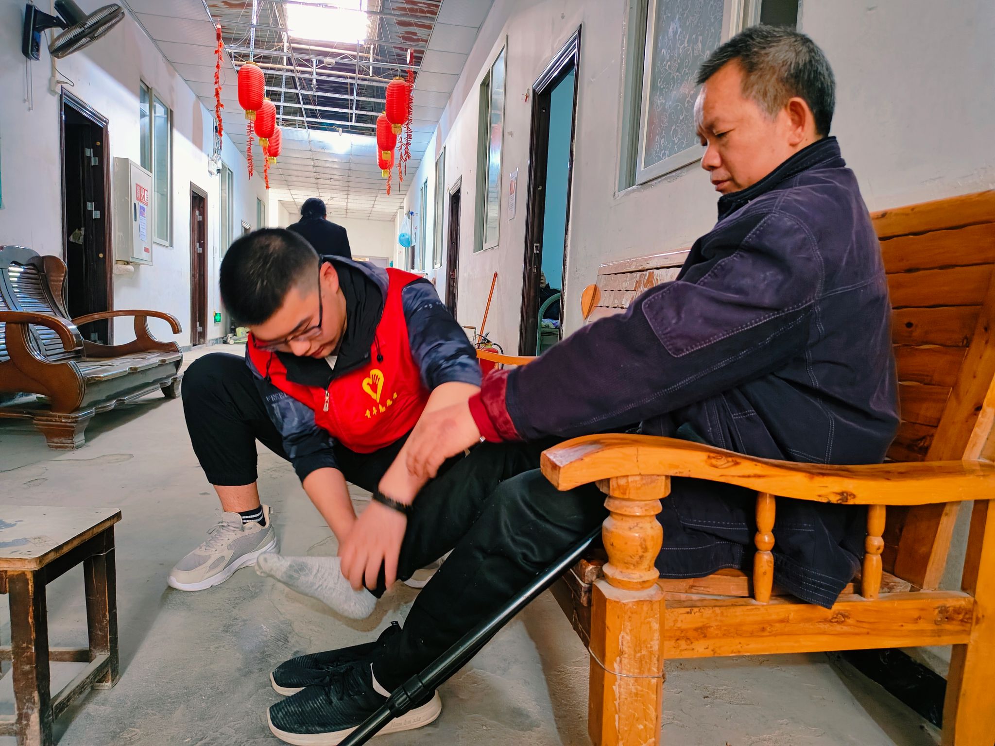 敬老院的老人们年龄偏高,身体的各个部位不可避免地会出现酸痛的毛病。因此,志愿者们根据各老人的不同状况为其肩颈、腰部、头部进行按摩,并给老人们提供了改善身体部位疼痛的小妙招,希望可以舒缓老人部位的酸痛。有位老人在按摩后微笑着说道“平时走路的时候腿都疼得受不了,今天多亏了你们的按摩,我的腿的疼痛舒缓了很多。”与此同时,志愿者分工为老人们修剪指甲、洗脚、打扫卫生,志愿者们用实际行动给老人带去温暖,排解老人心中的孤独。