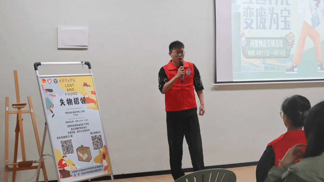 4月11日至4月13日参与活动的同学们进入群聊填写闲置物品交换表格,由工作人员收集整理。待所有参与者签到到齐后,主持人宣布活动开始。活动开始,首先由“送我回家”失物招领志愿服务专项支队队员向参与同学们介绍了这只支队,并向同学们讲解了如若捡到失物或丢失物品该如何处理,让这些丢失物品能更好更快地回到同学们身边。