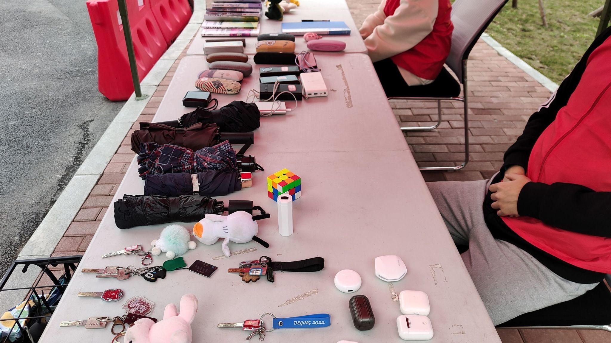 阴雨绵绵,送“我”回家失物招领志愿服务专项支队的失物展出活动仍如期进行。失物招领支队自成立以来,累计拾得失物千余件,其中尚未领回的失物仍有几百件,为更好地帮助失物找到自己的“主人”,助力失物回家,志愿者们通过在线上QQ群的语言图片召集宣传和线下的失物展出活动,不断地吸引同学们的注意力,帮助寻回遗失的物品。