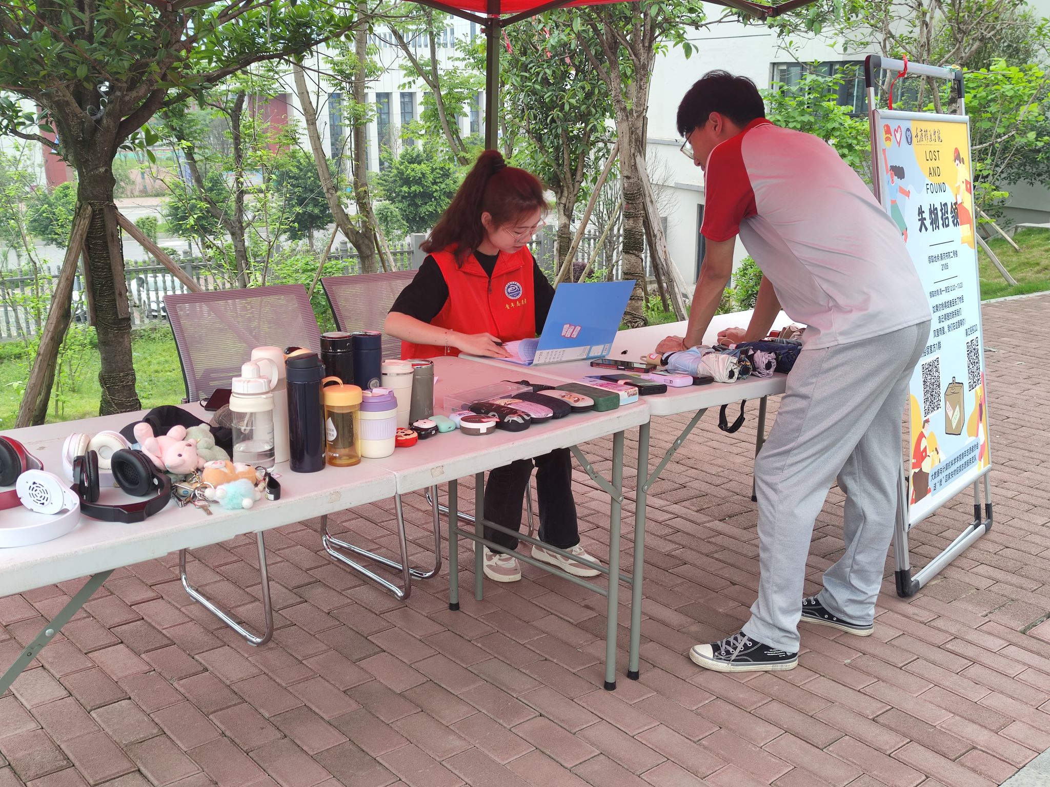 展出期间,每位队员分工明确,坐班的队员帮助失主寻找其丢失的物品和登记收到的物品信息,并在官方群里发布相关信息,让更多的同学帮忙寻找失物,引导同学们为此做宣传。通过失物展出活动,不少同学从中找回了自己遗失的课本、雨伞等物品。看到同学们失而复得的喜悦,我们内心也得到了满足。
