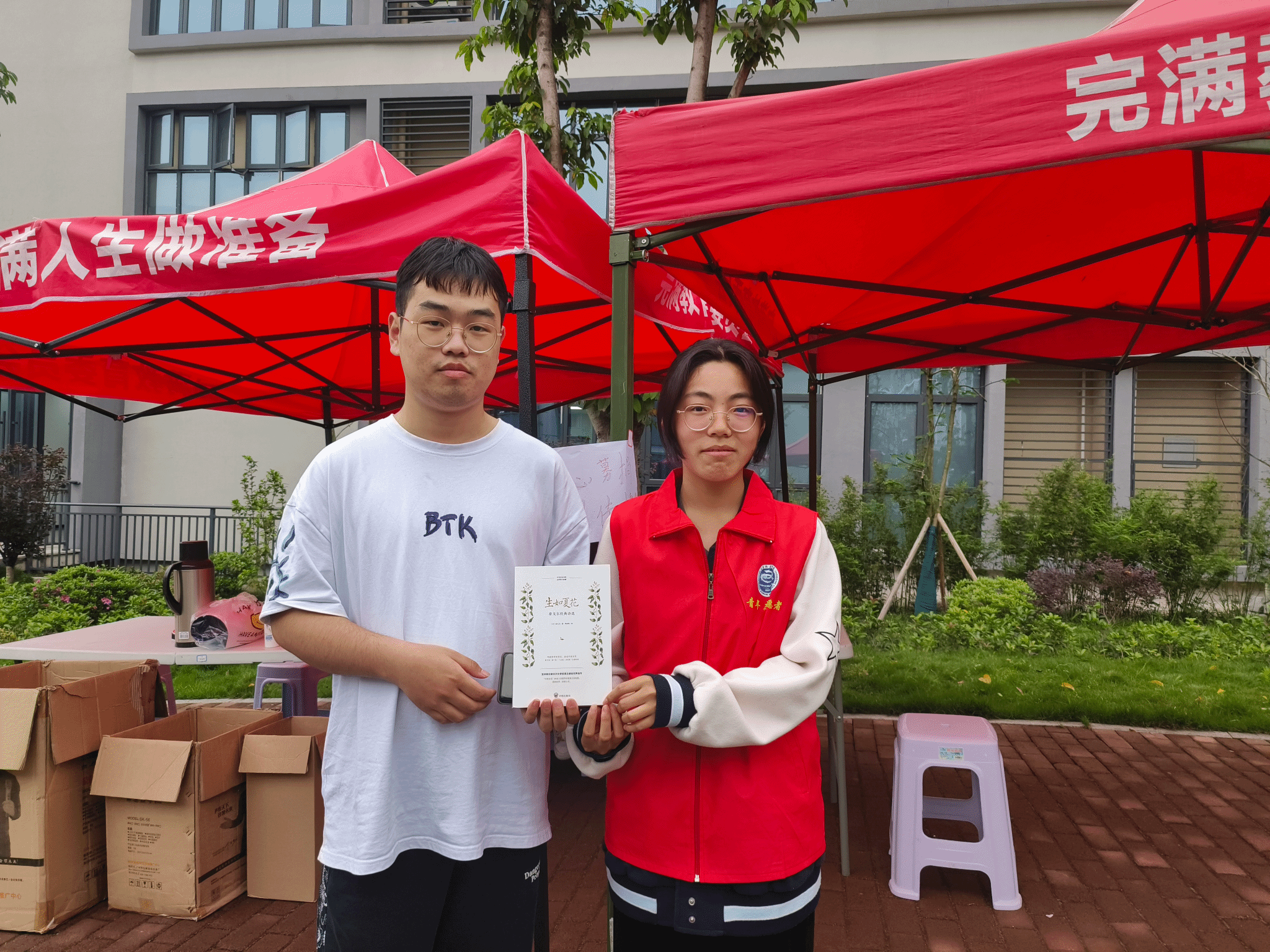 活动期间,实训楼下的捐赠点热闹非凡,同学们纷纷将自己闲置的衣物、玩具、书籍、文具等等带来捐赠,尽自己绵薄之力,奉献一片真心。每天捐赠时间段都会有坚持值班站岗的志愿者们,看着纸板箱里装的满满的物品,甚至是一些尚未拆封的物品,大家都非常感动,用爱心化作太阳温暖所有人。不仅仅是老人和小孩儿,还有每一名志愿者、每一名老师以及自己。这就是大家共同倡导的“奉献、友爱、互助、进步”的志愿者精神。