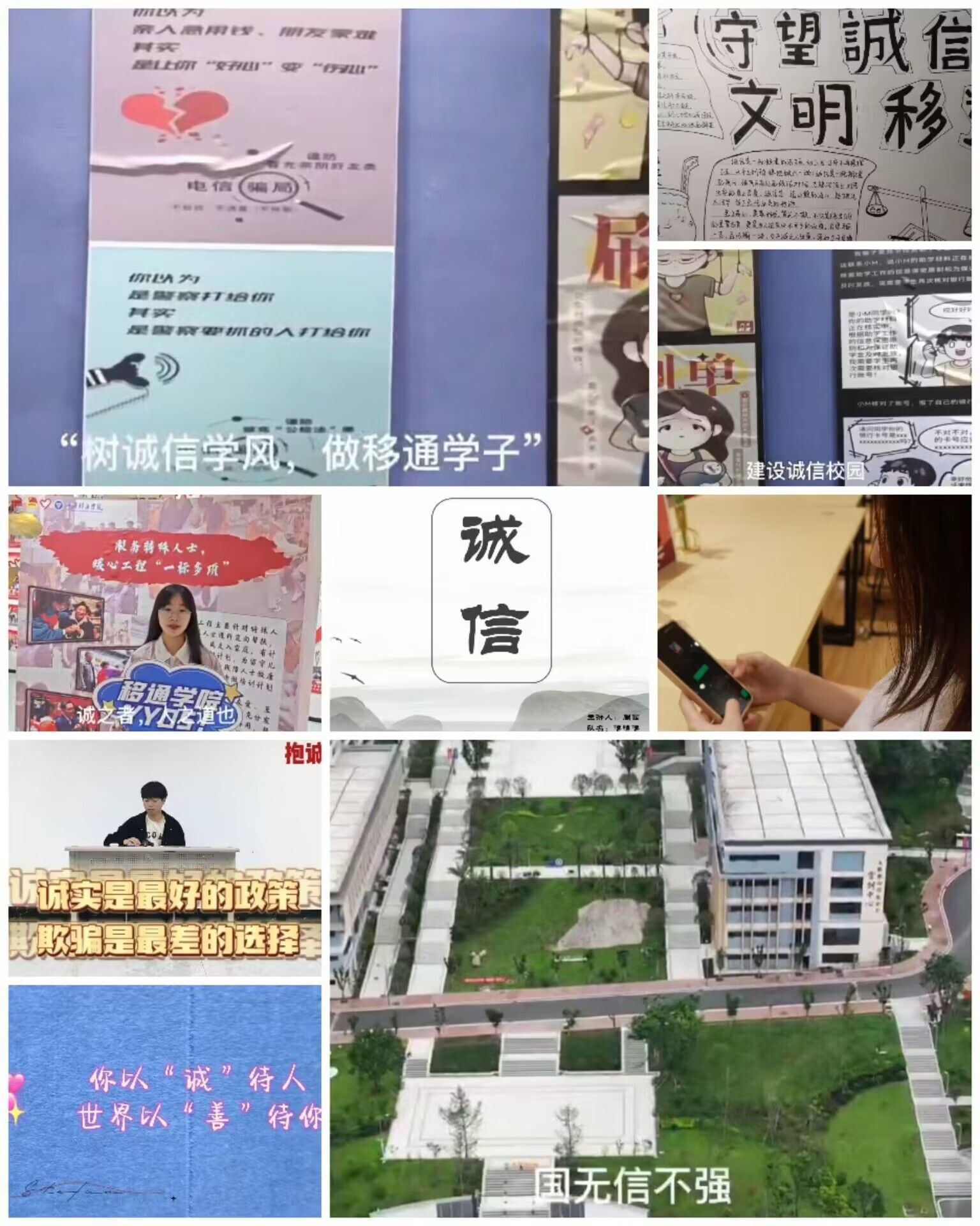 为进一步弘扬诚实守信的中华民族传统美德,培养大学生优良道德素养和崇高品质,大数据与计算机科学学院守望诚信志愿服务专项支队开展诚”在移通,一“綦”守信创意大赛,通过微视频、手抄报、微课等多种形式展现大学生心中的诚信,帮助大学生明确诚信的本质和内涵、诚信与道德、诚信与大学生成才的关系,懂得诚信是一切道德赖以维系的前提,自觉地做一个诚信的大学生。
