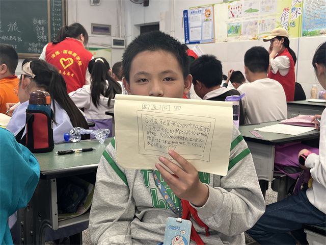活动期间,志愿者和小朋友们一起用绘画和写给志愿者一封信的方式描述小朋友心目中的志愿者,在这期间听到一个小朋友说到:“志愿者给我们带来了快乐和帮助,长大了我也想一成为个能够给人带来快乐和帮助他人的志愿者。”小朋友们的话给在场的志愿者们带来了很大的鼓励。