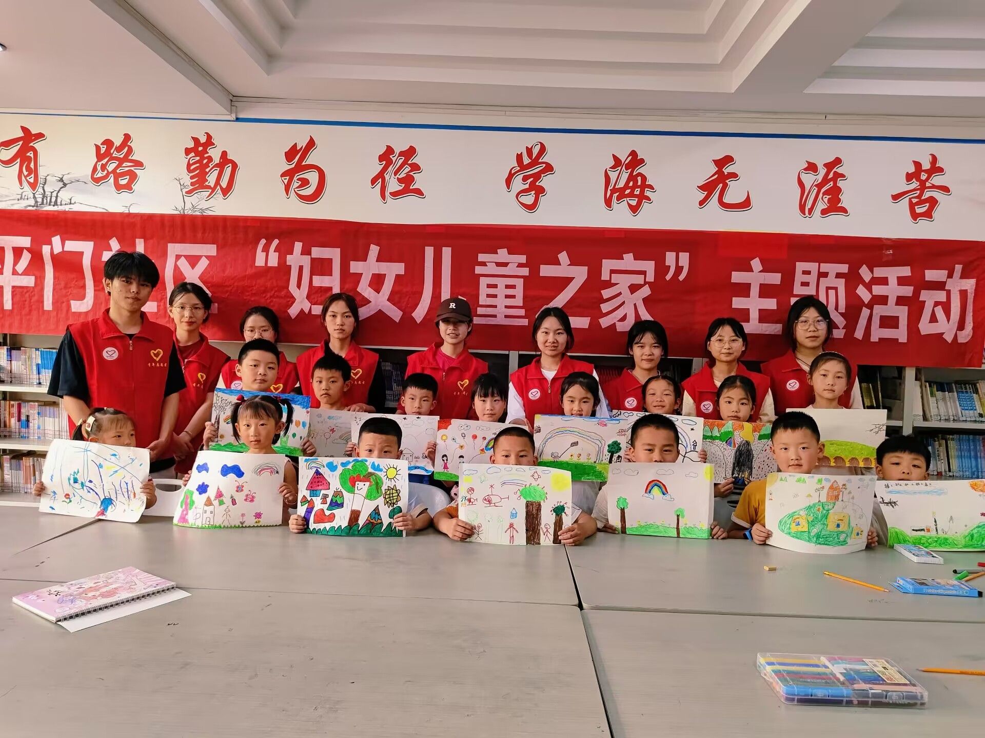 本次绘画活动在阵阵欢声笑语中悄悄接近了尾声,小朋友们手举着画作与志愿者拍照留念,留下属于小朋友们与志愿者最独特的春日记忆。这些作品生动有趣、色彩分明,小朋友们充分发挥想象力与创造力,在画里的美妙的世界之中尽情飞翔,充满了童趣与美好的想象。
