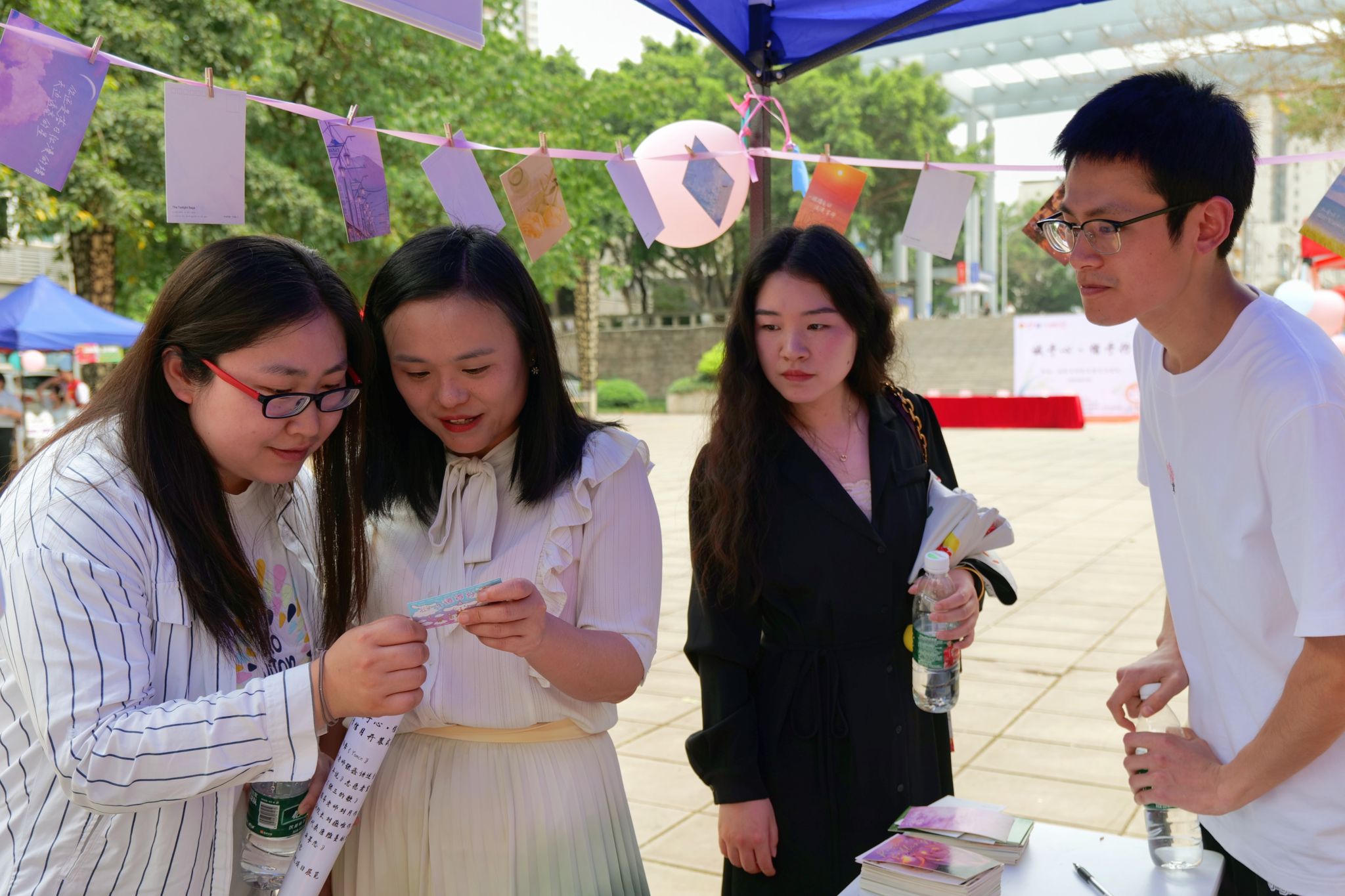 与此同时,六个小小帐篷正在热火朝天地进行中,无人售卖、诚信小游戏、公益图书驿站、ZBB公益营销、青信帆布袋、物物交换,同学们在打卡过程中发现诚信、学会诚信,践行诚信。时间瞬逝,同学们整齐有序地站在喷绘旁前一手攥着刚在游戏中赢得的美好寄语一手比着“耶”开心地与老师和志愿者们合照留念。相信在此活动之后青年信用体系也将永远留存荡漾在大家心中,为青年学子在未来为人处世方面筑牢根基,成为指路灯引领青年永远行走在正确的道路上,永远熠熠生辉。