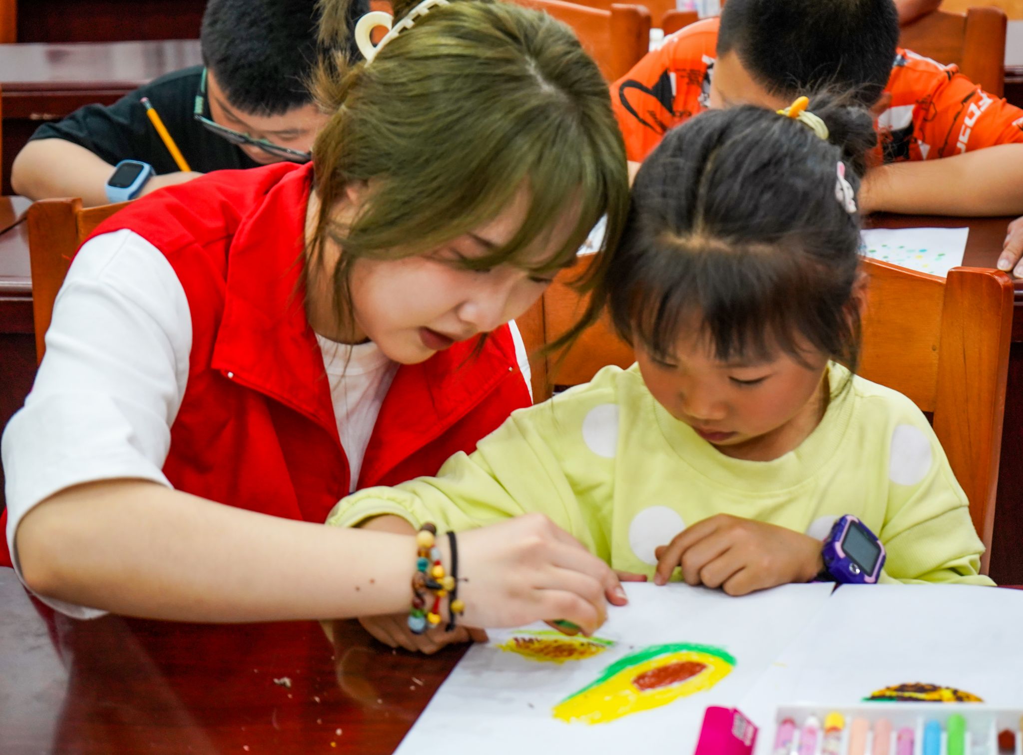 志愿者们让小朋友们自己动手在画纸上绘画,从最基础的“点”开始,用“点”来绘画出彩色水果,感受绘画的乐趣。志愿者携手小朋友一起执笔,在画纸上画上各种颜色的“点”,在悉心地教导与帮助中,完成属于自己独创的画作,用色彩展现出小朋友们童真心灵。不仅传递了志愿精神,让更多的人参加到志愿服务中,一同传递爱心,感受志愿带来的乐趣,提升自我价值。