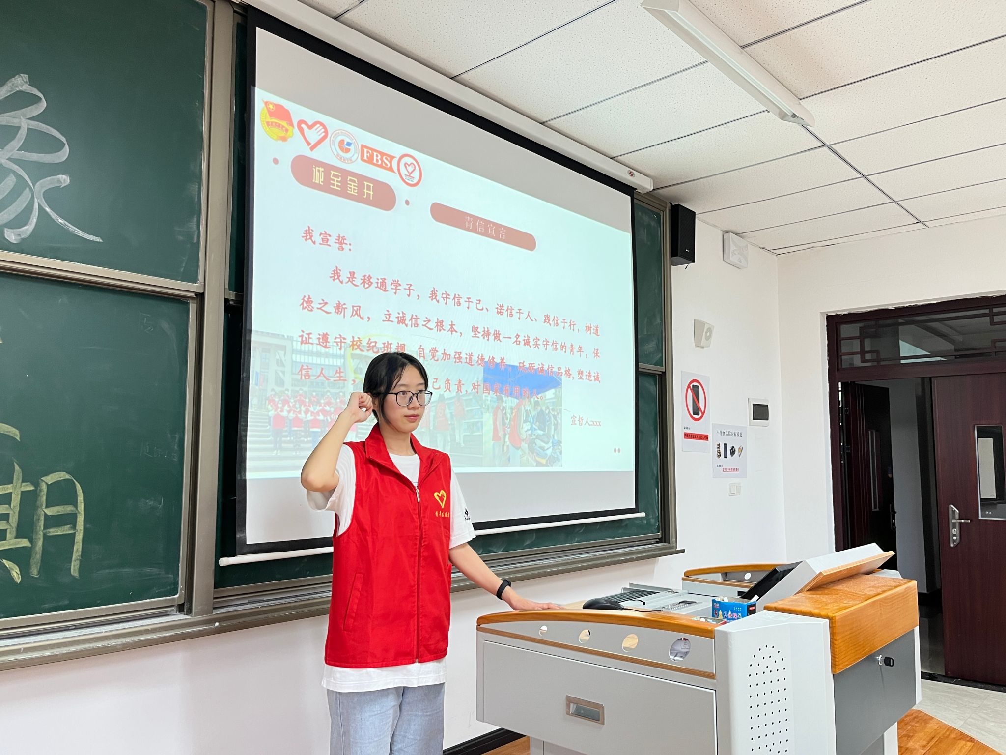 青信要义,无不根基。向内强化青信理论与知识的建设,向外以各类青信主题活动进行巩固,商院学子都要争做青信理论的践行者。本次花果培训结束后,2020级、2022级各班团支队长与2022级工商管理类23班同学合作,将诚信宣讲对商院进行全覆盖!