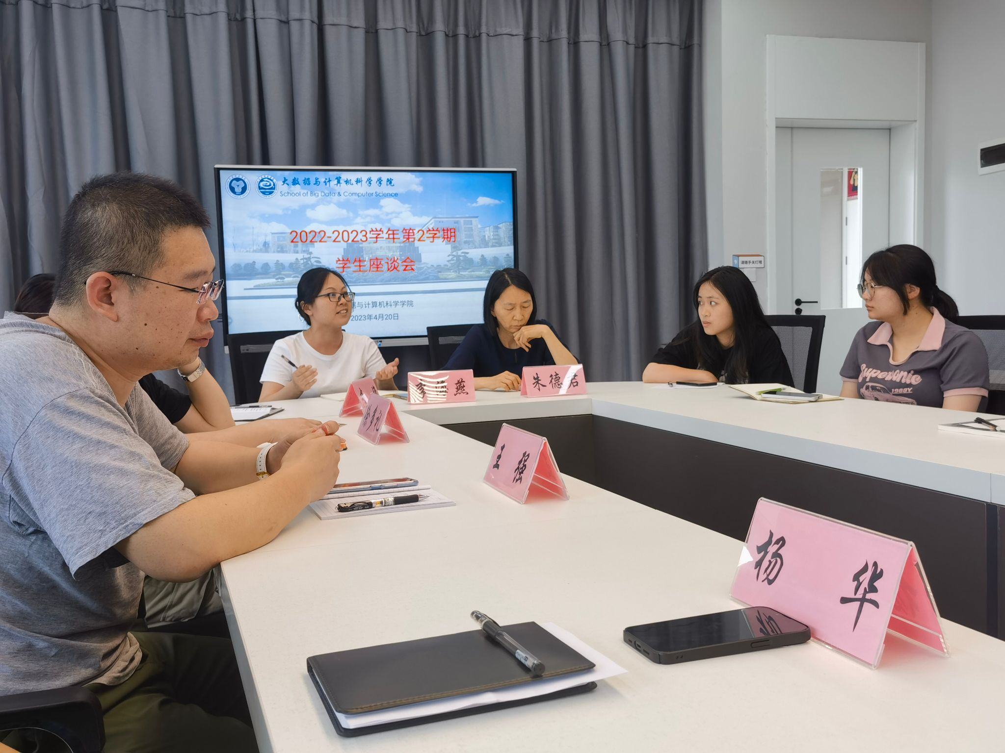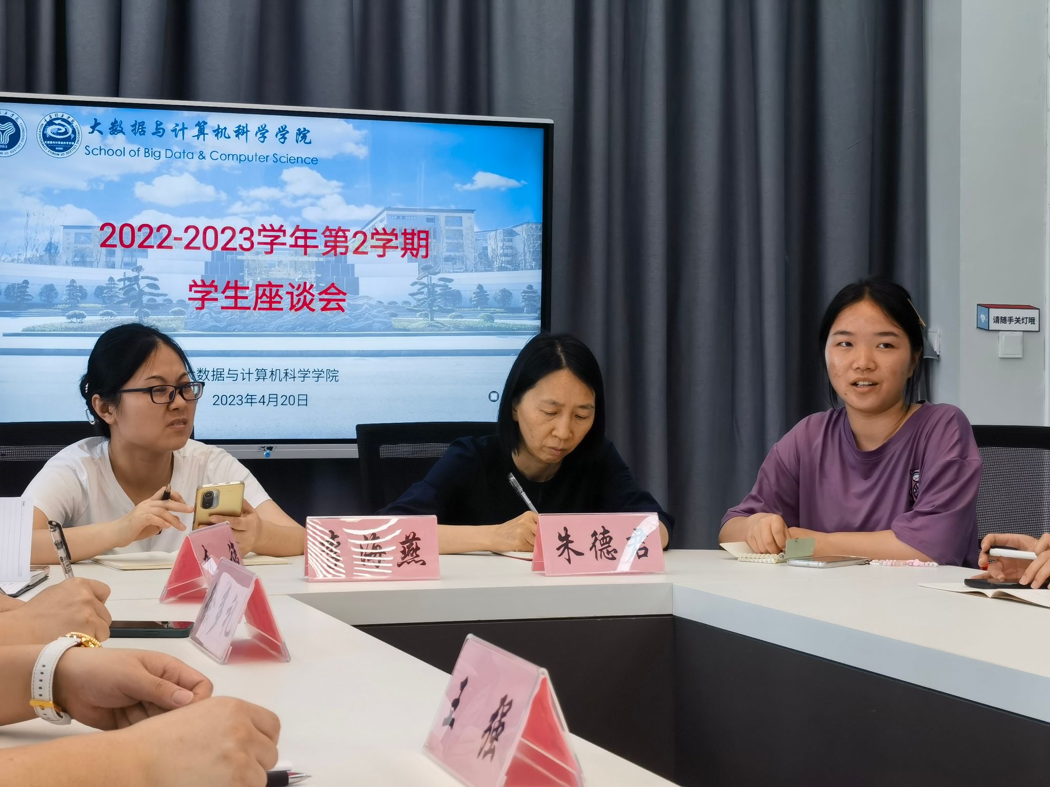 为进一步畅通教师与学生的交流渠道,促进大数据与计算机科学学院师生沟通关系发展,深入、细致地了解学生入学以来的生活学习情况,精准、全面、及时地了解学生对学校教育教学、管理服务等方面的意见和建议,真正做到关心学生、关爱学生、服务学生。4月20日下午,大数据与计算机科学学院在玉棠书院地心会议室组织召开了学生座谈会。学院副院长林泽金老师、团总支书记兰宇老师、教研组组长朱德君老师,以及相关科任教师代表、辅导员代表、学生代表共同参加了座谈会。