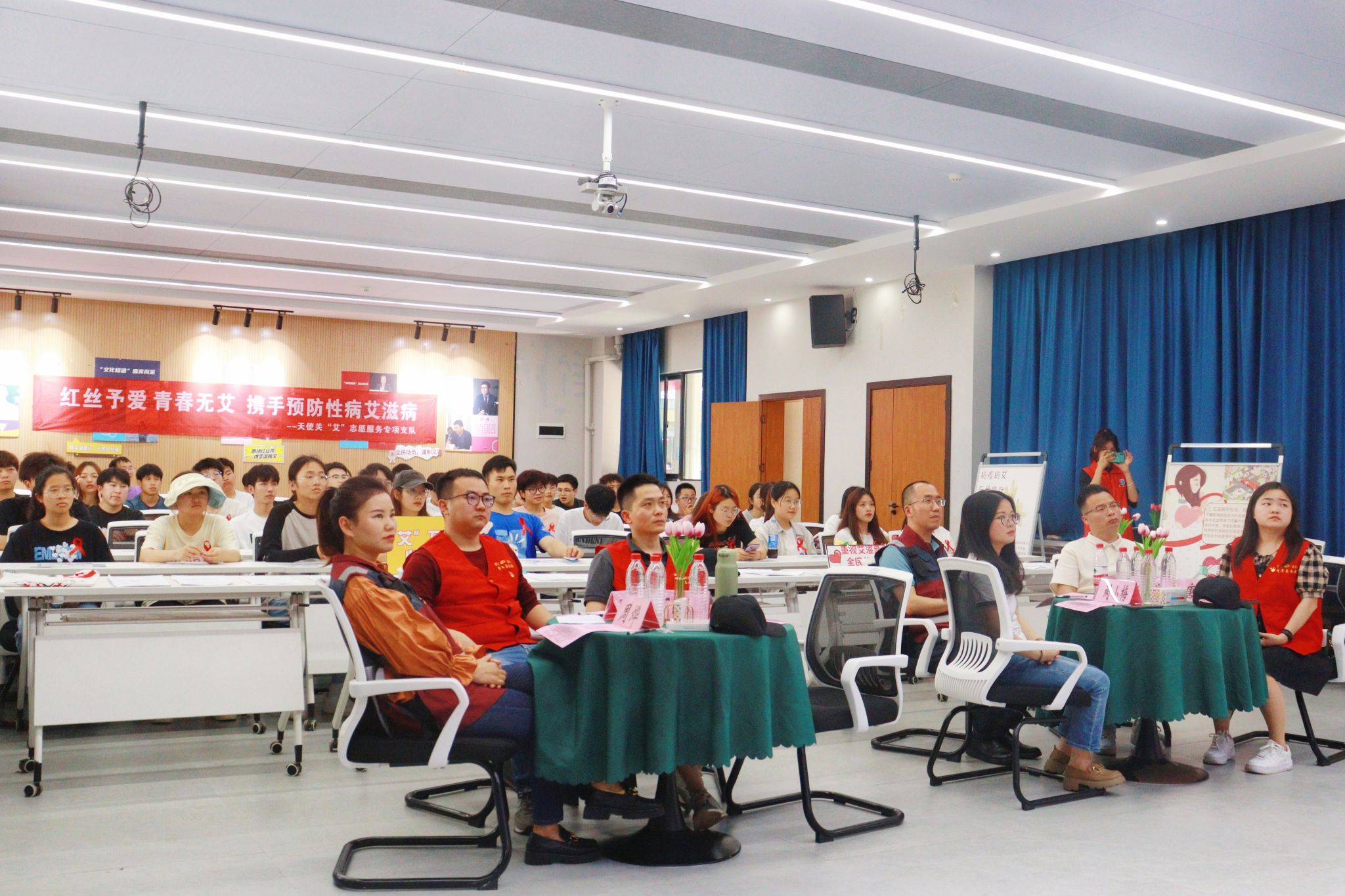 作为主办此次活动的主办方,大数据与计算机科学学院天使关“艾”志愿服务专项支队在活动前进行了前期调研,针对调研结果精心筹备了活动环节和内容,精心地布置现场、制作物资、设计环节等等。区疾控中心的专业老师们也带来了艾防的宣传页和宣传手册等等,并发放到每个同学手中,让同学们更加全面地了解艾滋病防治知识。