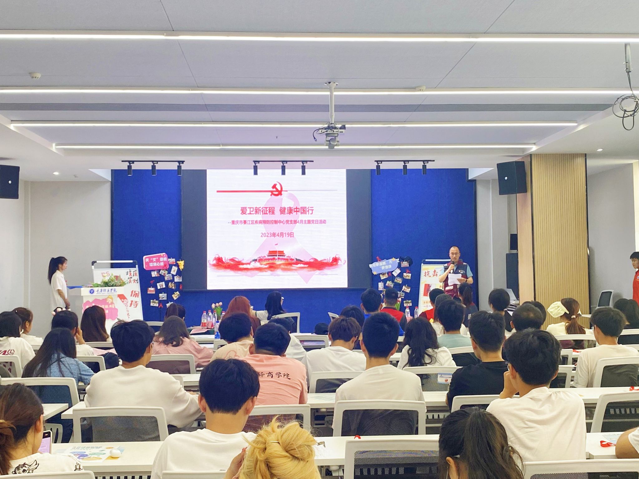 为了进一步做好校园预防艾滋病知识普及宣讲,让更多大学生主动关注艾滋病防治的相关知识,构建“预艾知艾检艾防艾”的防治体系。4月19日14:00,大数据与计算机科学学院携手重庆市綦江区疾病预防控制中心在綦河书院观涛多功能报告厅共同开展“红丝予爱 青春无艾”携手预防性病艾滋病主题宣教暨“花果4+N”志愿服务培训。