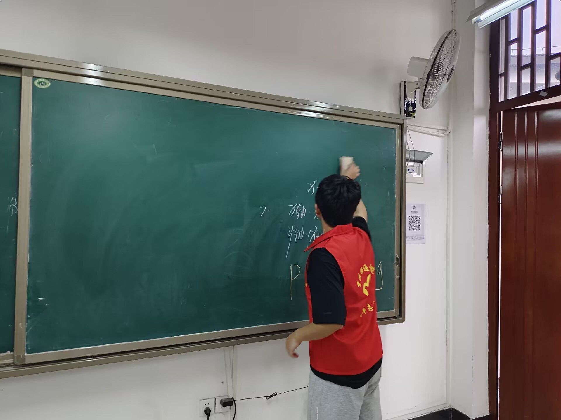 首先,志愿者16:00到达松格书院集合,穿上志愿者衣服,支队长给志愿者分配任务,然后志愿者按照分配的内容到达指定的书院进行教室清扫,志愿者用黑板擦擦掉黑板上的字迹,然后仔细检查教室内的抽屉,然后将抽屉内残留的垃圾拿出来,扔到垃圾桶里,清扫完毕后,志愿者有序在松格书院合影留念!
